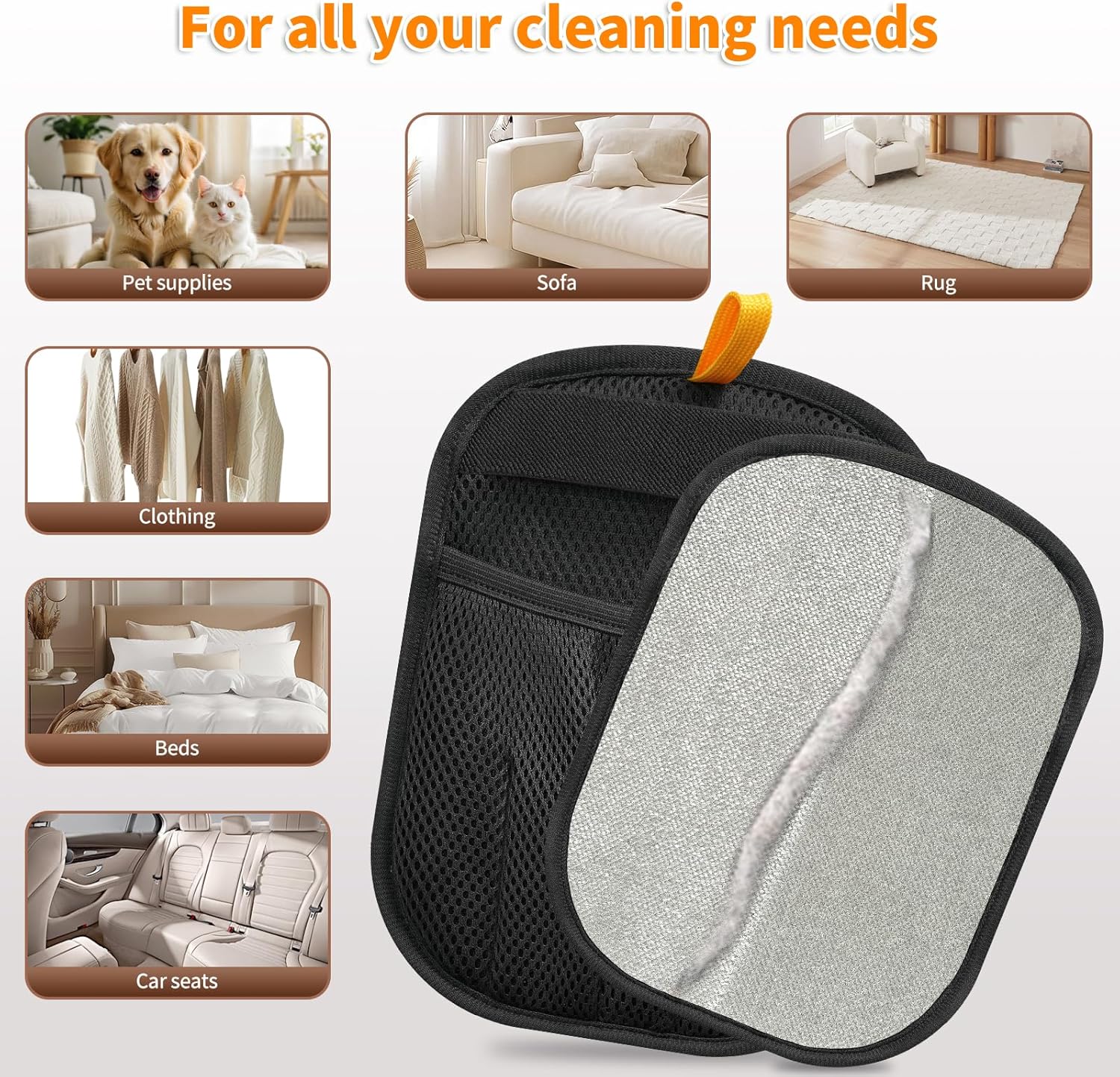 • 【Suitable for Any Fabric Surface】Whether used on clothes, beds, sofas, carpets, or car seats, these cat hair removal gloves work on almost any fabric surface. No more tedious rolling or spot cleaning—just slide your hand and witness the magic! Designed for multiple surfaces, it’s your go-to tool for all hair removal needs.