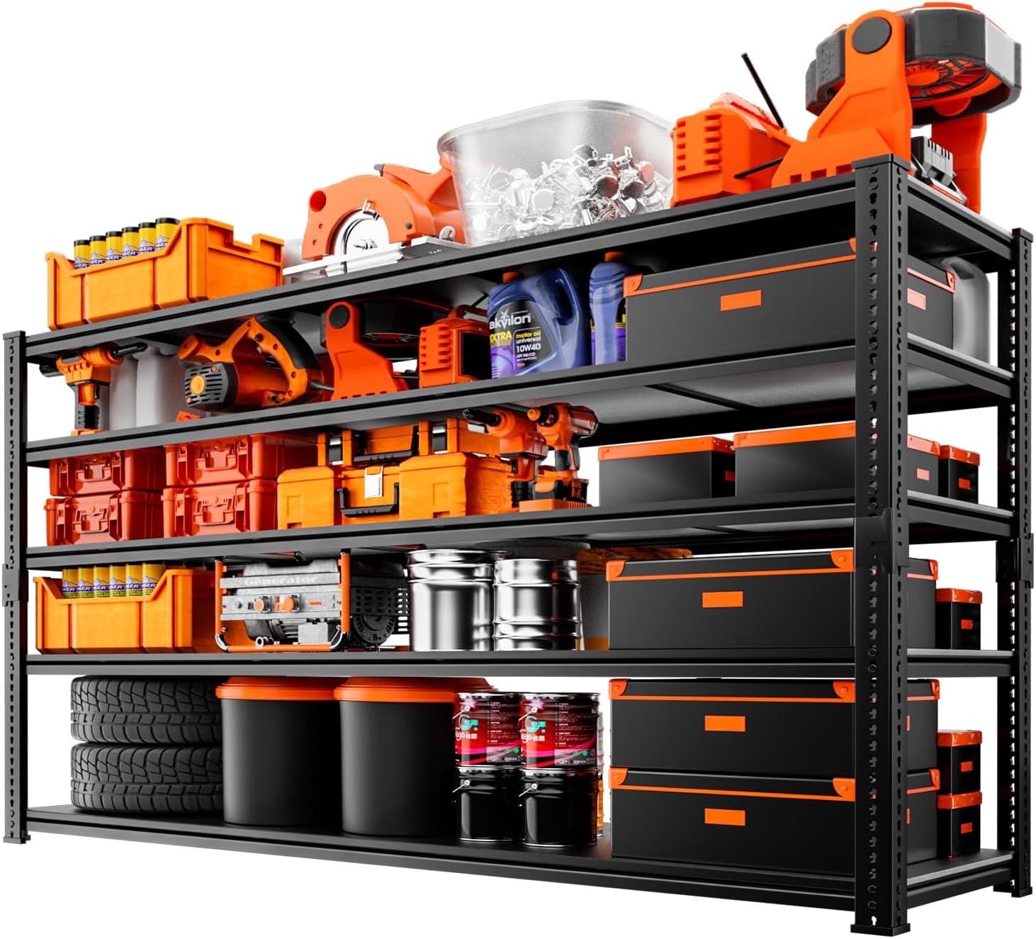 - 60" L x 24" W x 78" H Large Storage Capacity: Our extra wide garage shelves are 60" L x 24" W x 78" H and can hold at least 15 regular-sized 40-gallon storage containers, making your space organized even more. This utility standing shelf can perfectly solve your storage problem, and create a tidy space