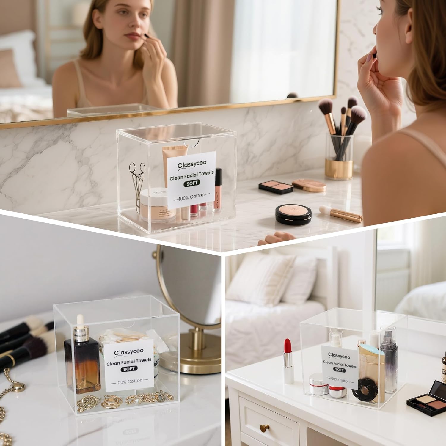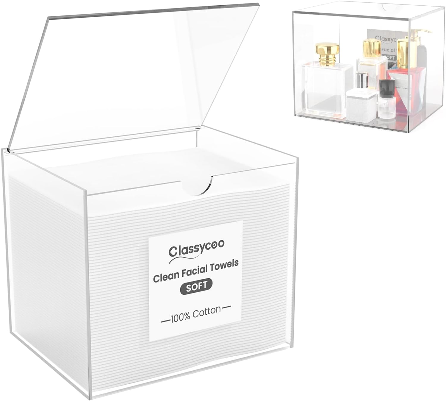 • Multi-Purpose Clear Organization: The waterproof bathroom box blocks dust in the air, keeps the face towel clean and dry in the bathroom. Also stores face washcloths, makeup remover pads, or cotton swabs. Space-saving for drawers, vanities, and countertops.