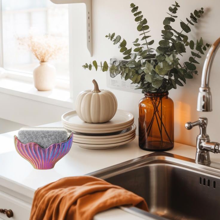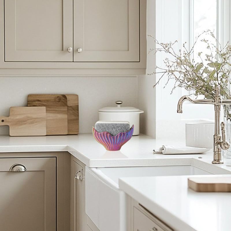 • 【Sturdy Construction】 Crafted from high-quality ceramic, this ceramic sponge holder showcases stunning mermaid-inspired rainbow colors. The durable material resists moisture and keeps its shape and beauty over time, making it a long-lasting kitchen sponge holder.