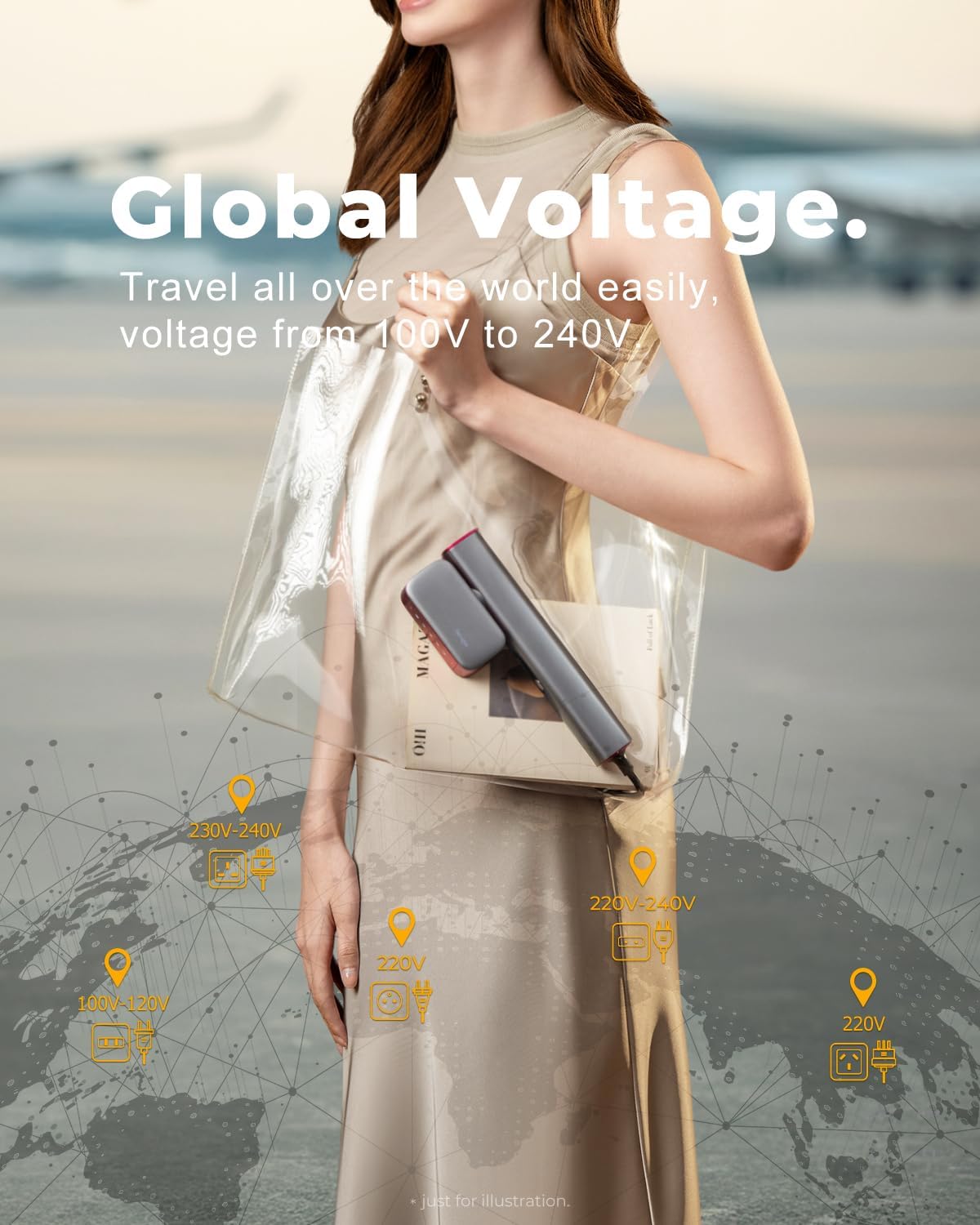 • 🌍 Global Voltage & Travel Ready (100-240V) Truly global – this steamer supports worldwide voltage so you can use it anywhere without a converter. Compact palm size and lightweight at just 0.8lb, perfect for business trips or vacations.