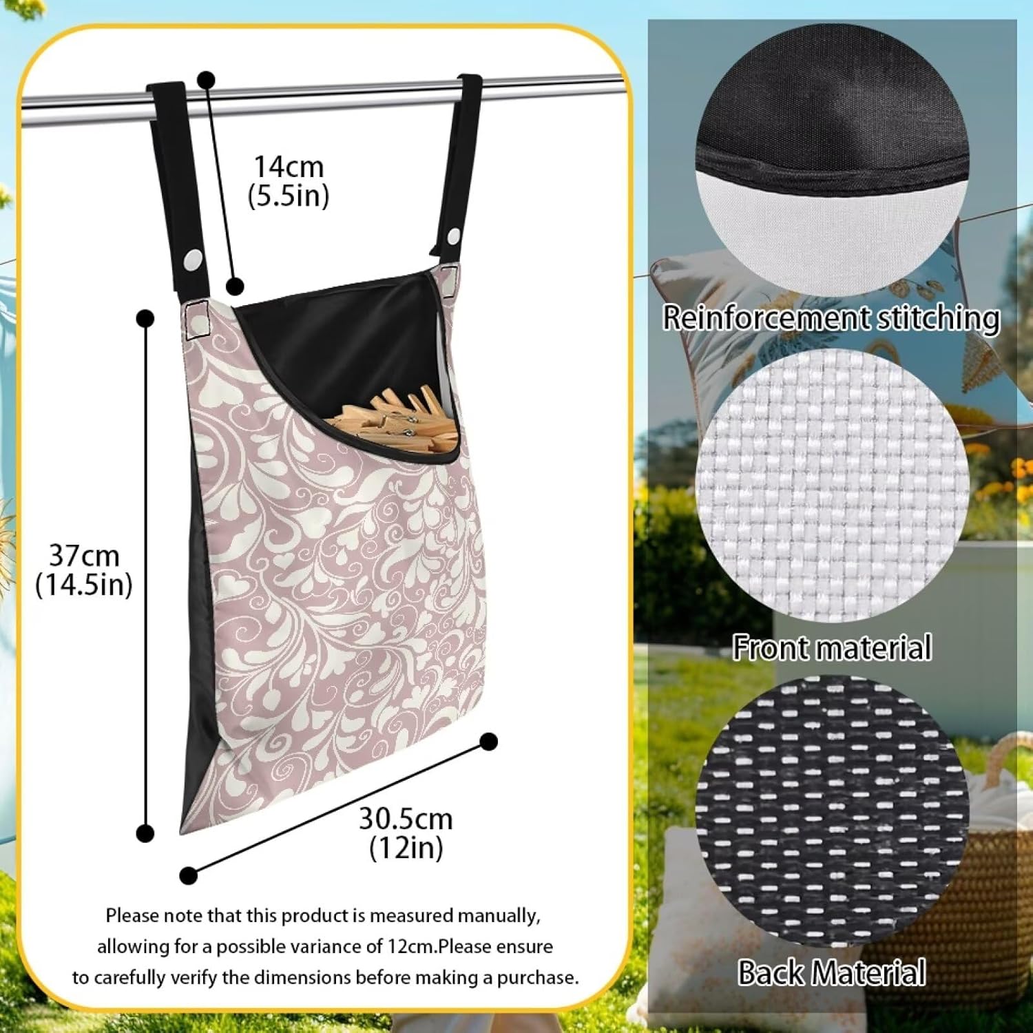 • [Practical Storage] 14.5x12in Large capacity space, easy to store wooden clothespins, gadgets, etc., openings designed for easy access, goodbye to scattered lost, balcony organizing a good helper.