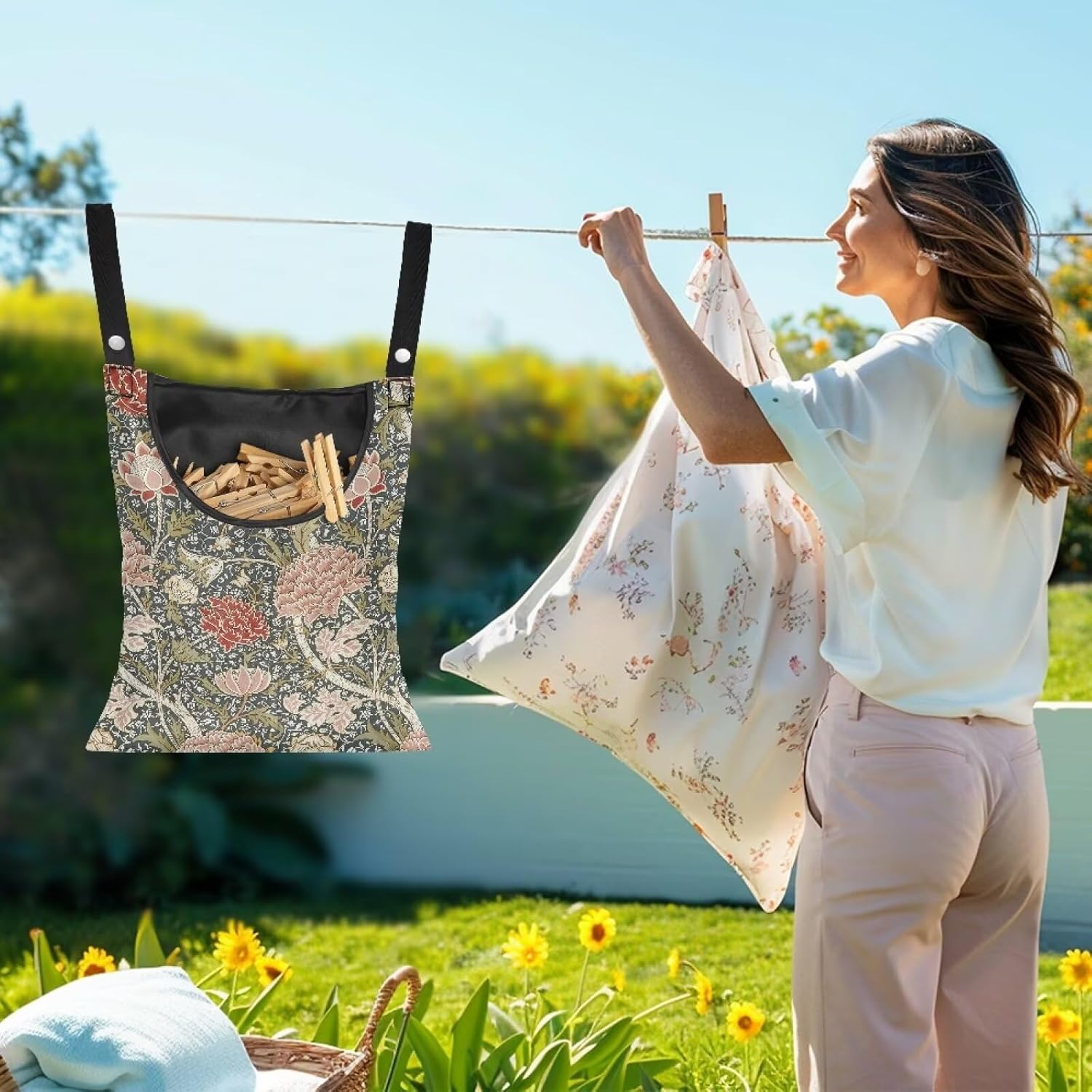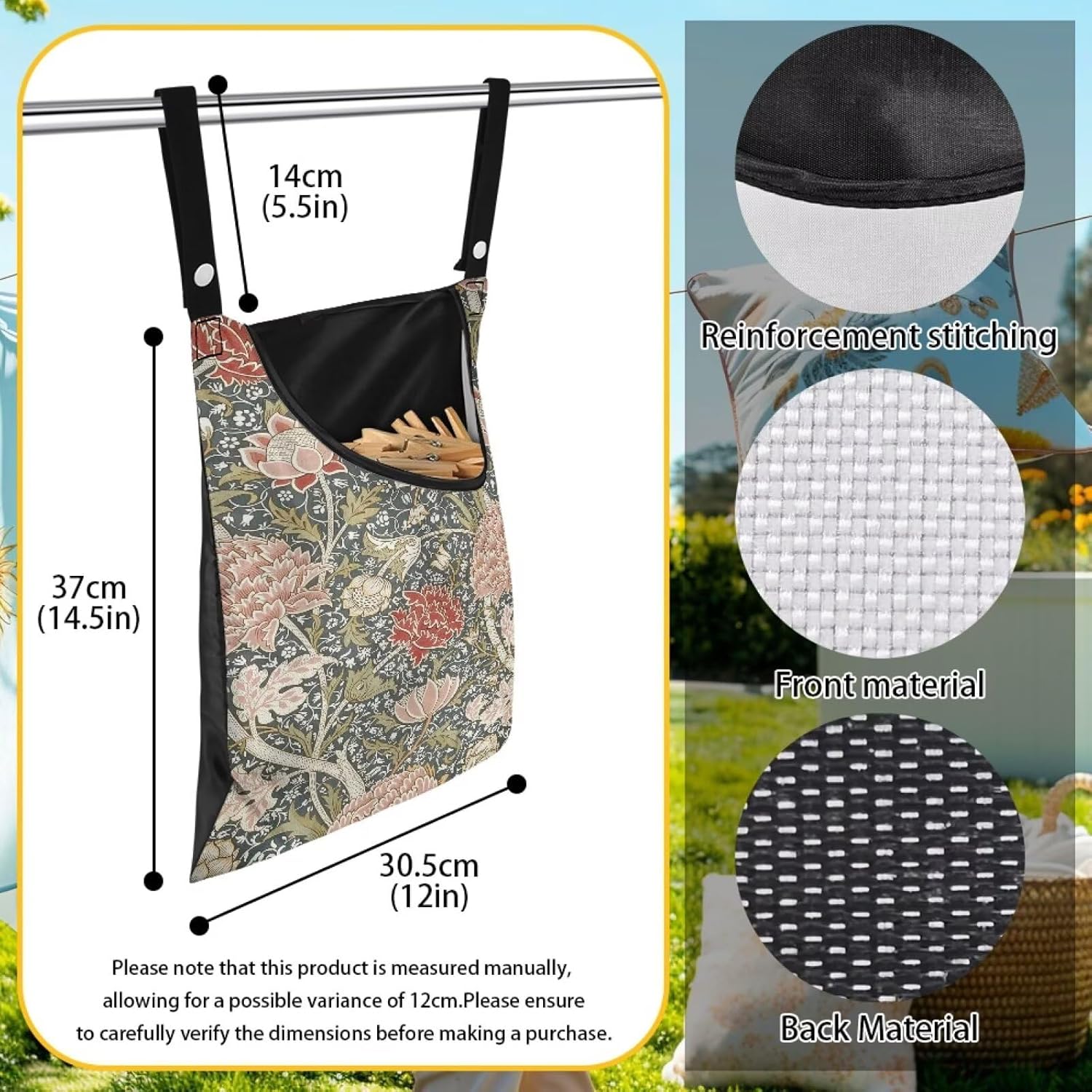 Home Clothespin Organizer 14.5"x12" - Spacious Interior with Wide Mouth Opening - Durable Hanging Storage Solution for Busy Households & Laundry Facilities Hydrangea Tree Branch Print