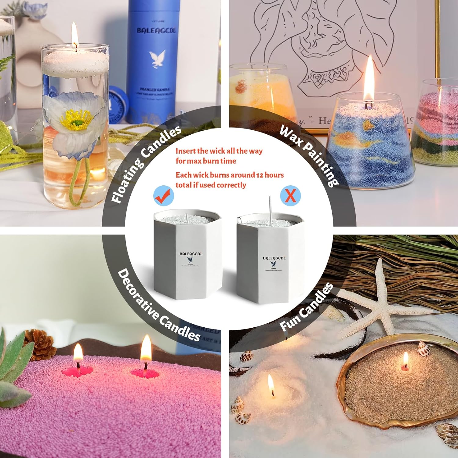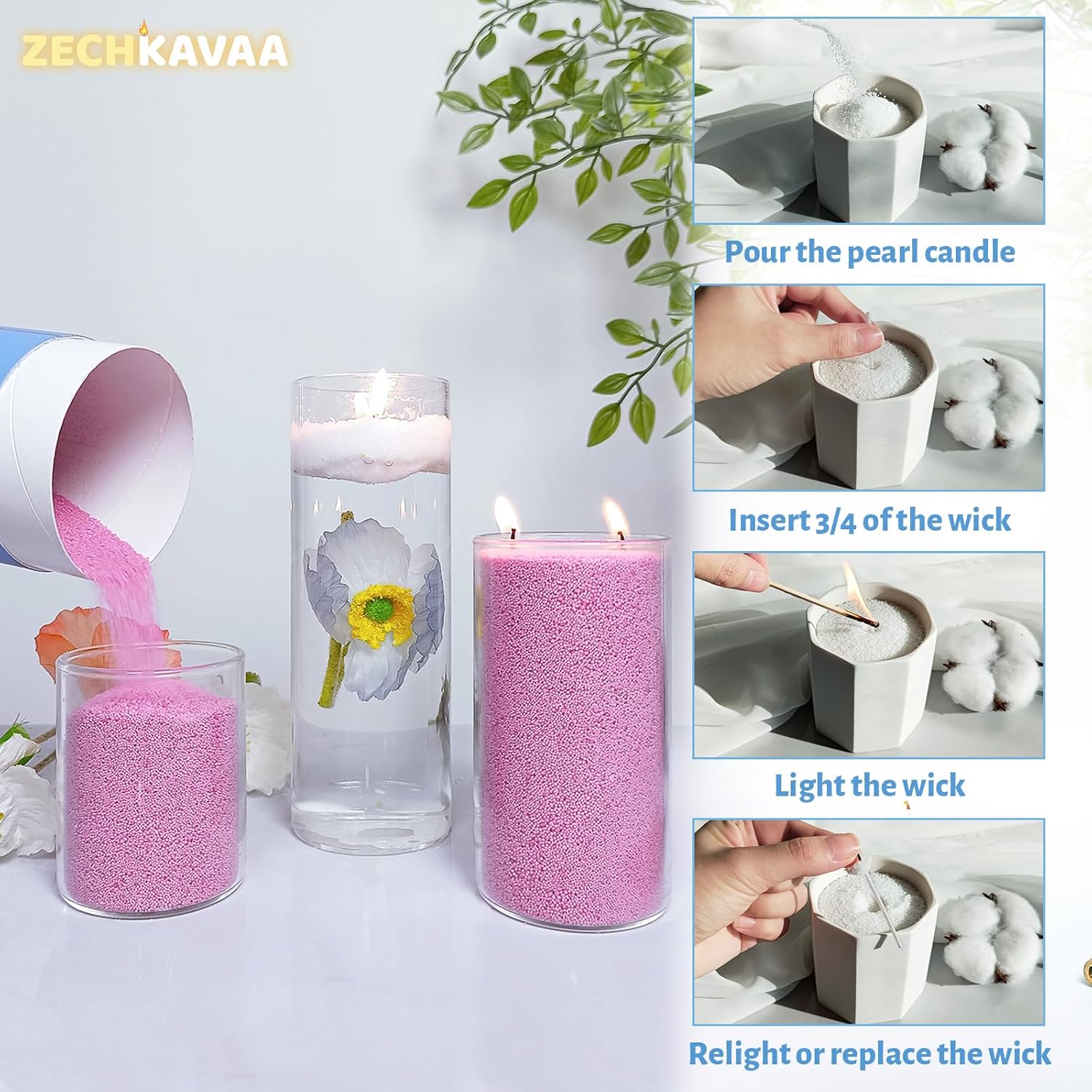 - 【Handmade Pearl Candles】Our refreshable candle sand powder provides a unique, reshapeable candle experience that lets your candles look brand new every time you light them. Just replace the wick to refresh your pearled candle.More flexible and decorative than other candles!