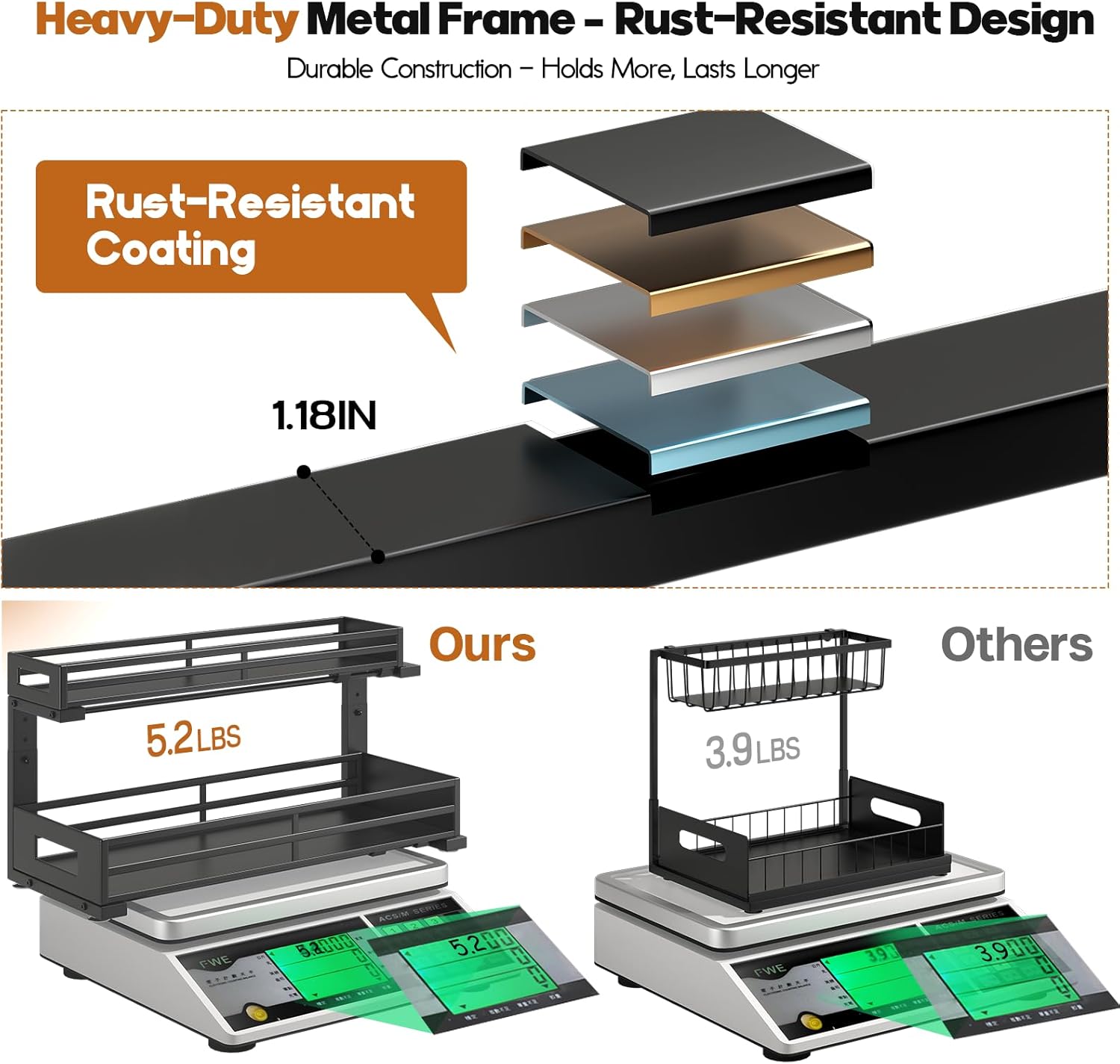 - 【Sturdy metal sheet frame& Rust-Proof】The under sink organizer is built from solid metal sheets with a strong frame and superior rust-resistant design, making it durable and ideal for long-term use in humid areas like kitchens,bathrooms and Laundry Room.