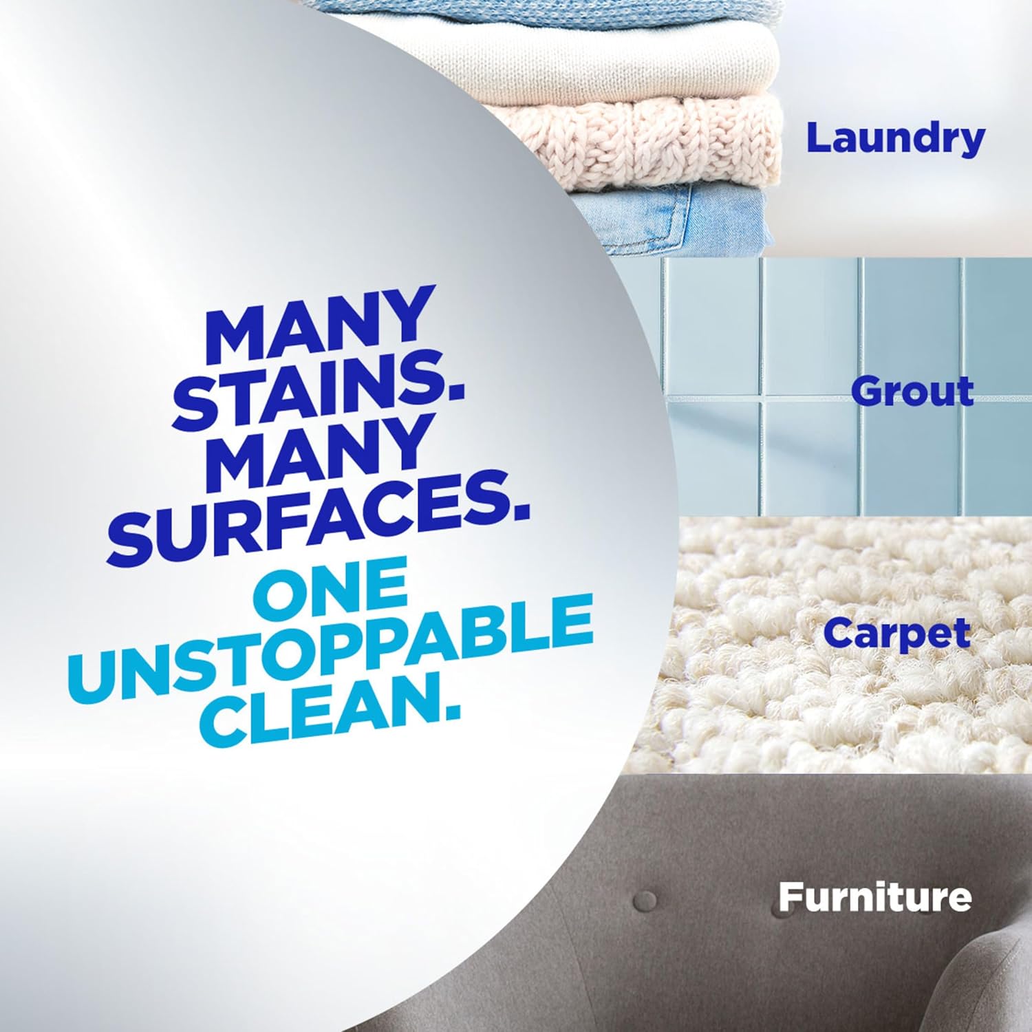 • 3X STAIN FIGHTERS vs. leading value detergent alone per load; use this laundry additive in every load to remove stains; at home on surfaces like grout, upholstery, carpet, and patio furniture; with 101 cleaning and stain-fighting uses for home and laundry