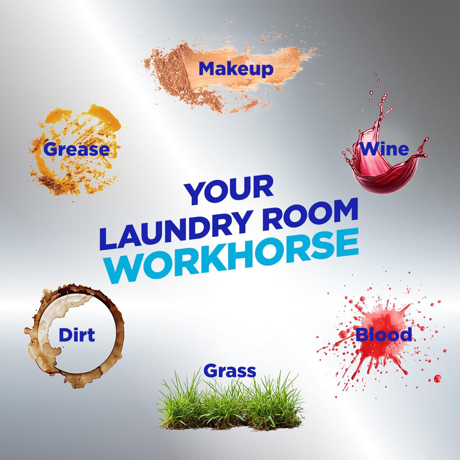 • TACKLES TOUGH STAINS like oil, grease, coffee, wine, chocolate, ketchup, berries, fruit juice, grass, mud, blood, ink and washable paint; it works on machine-washable fabrics like bedding, towels, washable sneakers, and sports uniforms