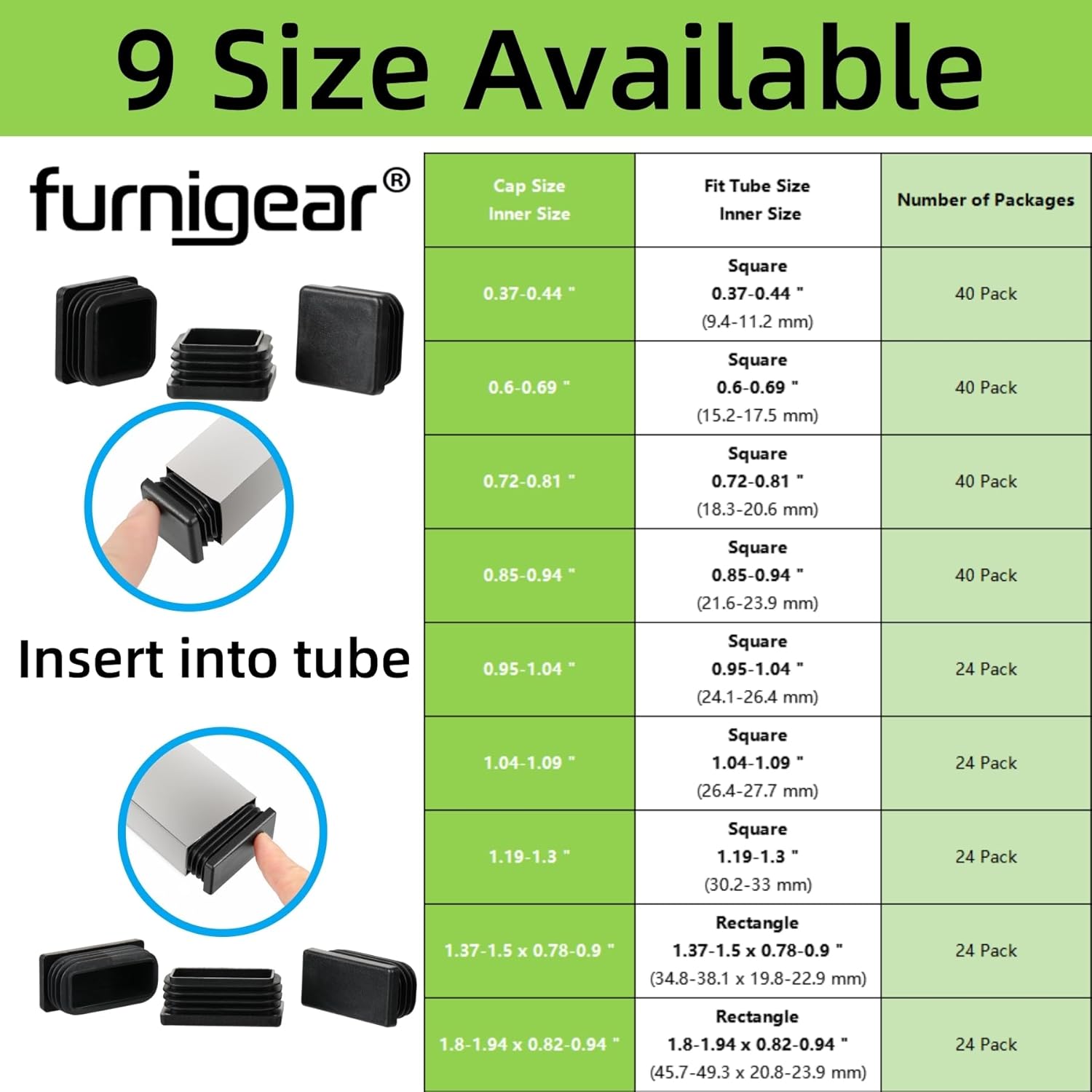 • Designed to Perfect Fit pipe tubing (Inner Length). The outside Length of the Furnigear Black Plastic Plugs End Caps . Used with 14-20 Gauge Tube Wall Thickness. (Important: Please measure the inner Length of your pipe before ordering.)