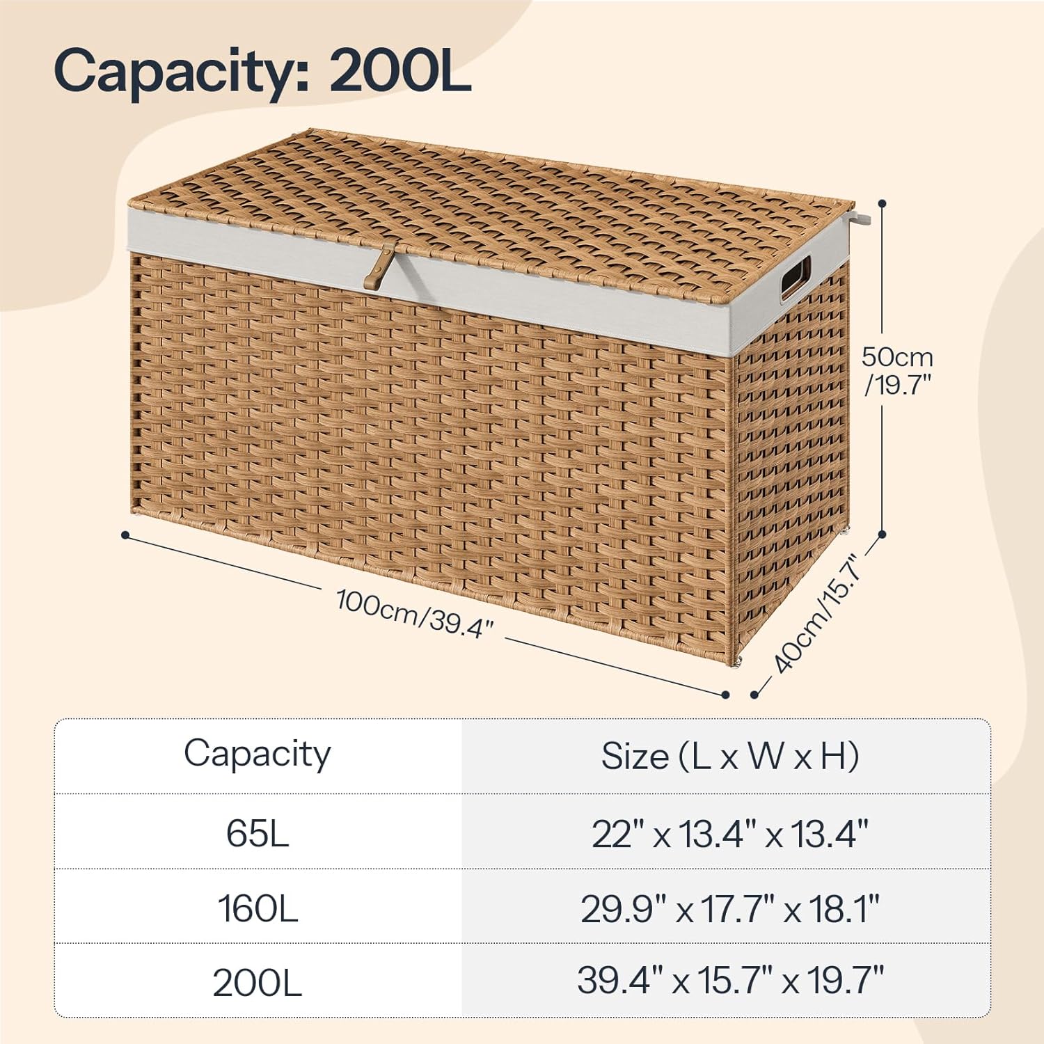 • Ultra-Spacious Storage: This 200L storage basket is a clutter-buster for bedrooms, etc. Its full-open lid lets you swiftly grab or stash clothes, and blankets. No more messy chaos; it turns your space into a neat, organized haven
