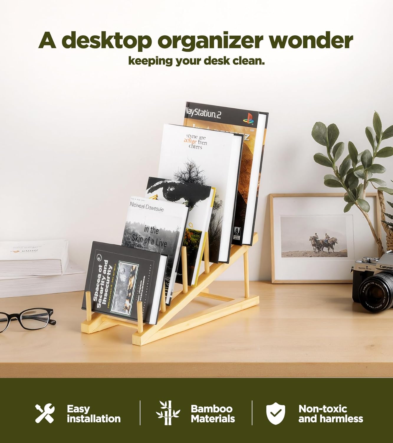 • Tool-Free Assembly: Effortlessly snap together 5 sturdy bamboo pieces (2 slanted racks + 3 connectors). Just align the pegs with the holes for a rock-solid, wobble-free fit—no tools needed!