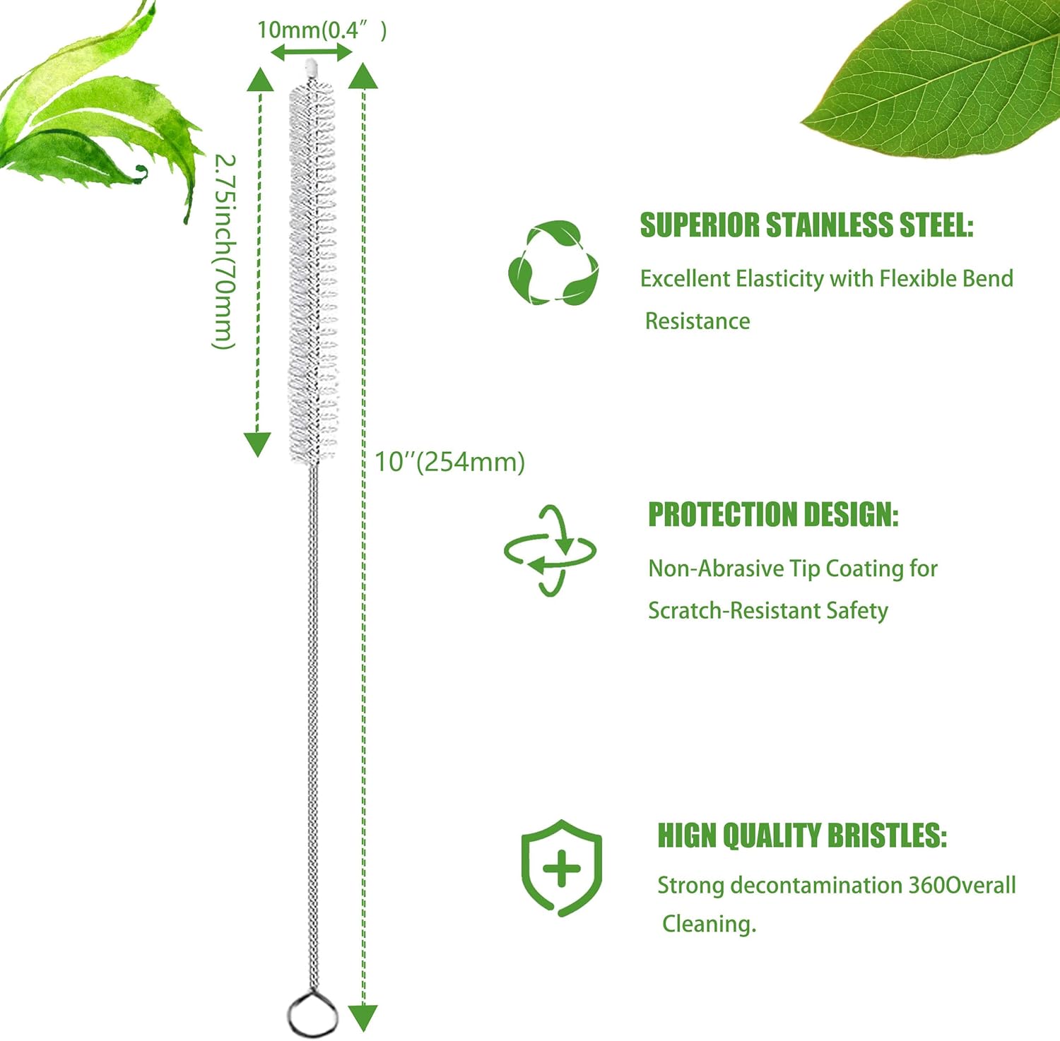• 【2-Pack Heavy-Duty Straw Cleaner Brush Kit】 This set features two straw cleaner brush extra ong tools (10"/304mm length) with 100mm nylon bristles in 12mm-wide designs. Replace flimsy bottle cleaner brush and pipe cleaners bulk with these eco-friendly brush for straws that conquer stainless steel straws, shaker balls, and keyboard crevices. Outperforms standard pipe cleaners craft and bulky electric bottle brush cleaner - the ultimate long straw cleaner brush flexes without bending in narrow spaces.