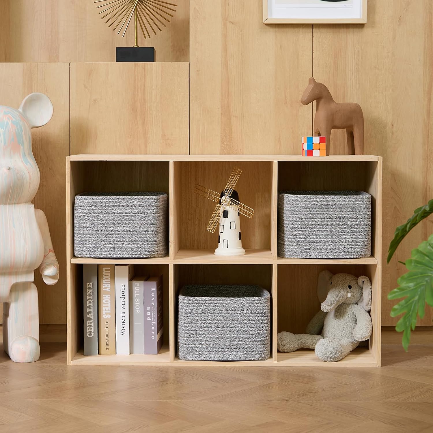 Small Organizing Baskets for Cubes Shelf, 9.7x9.7x7.1 Inch Rope Woven Storage Bins for Nursery Shelves Storage, Cute Toy Basket, Square 3 Packs Mixed Grey