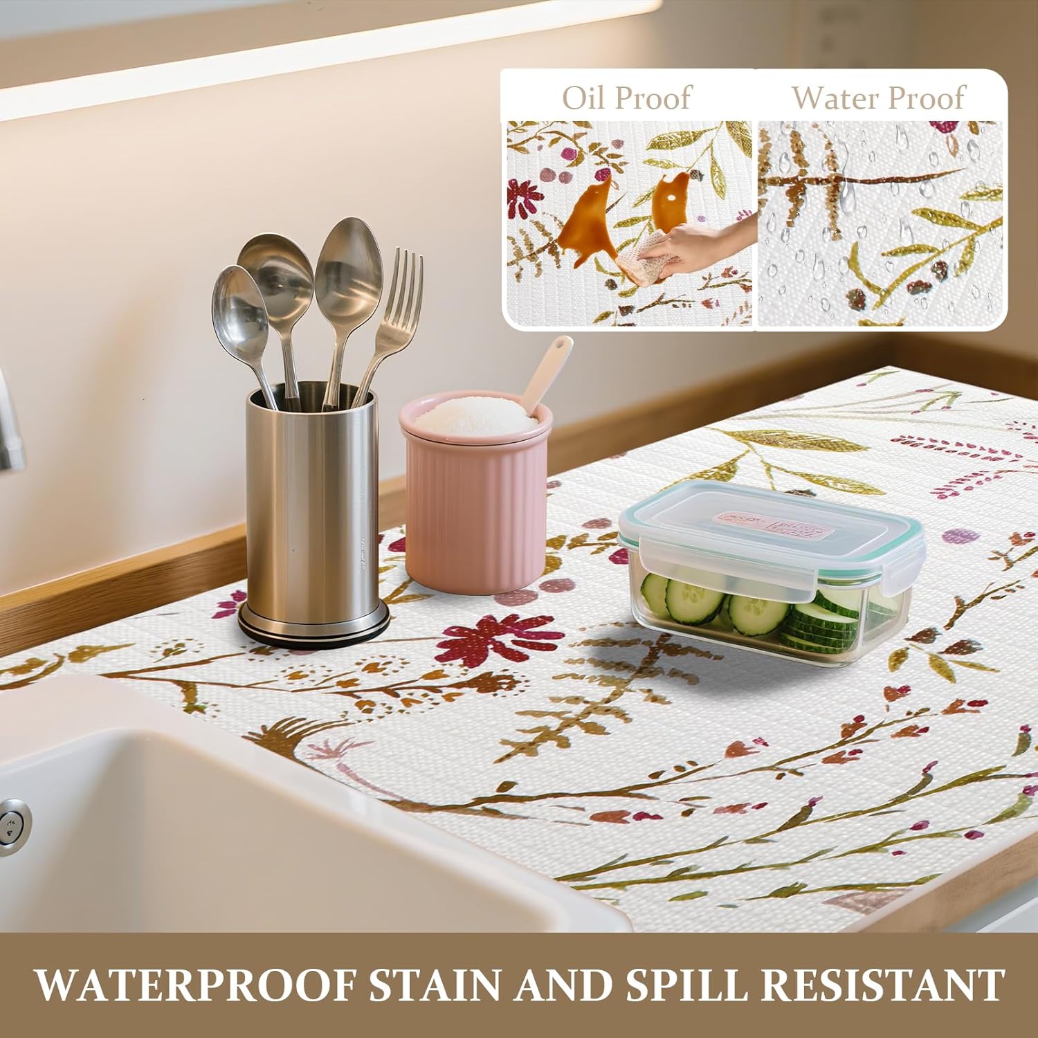 • 【EASY TO CLEAN, OIL-RESISTANT】Our waterproof vinyl barrier repels spills and grease. Messes wipe away instantly with a damp cloth—no seepage or stains. Saves time and keeps surfaces pristine