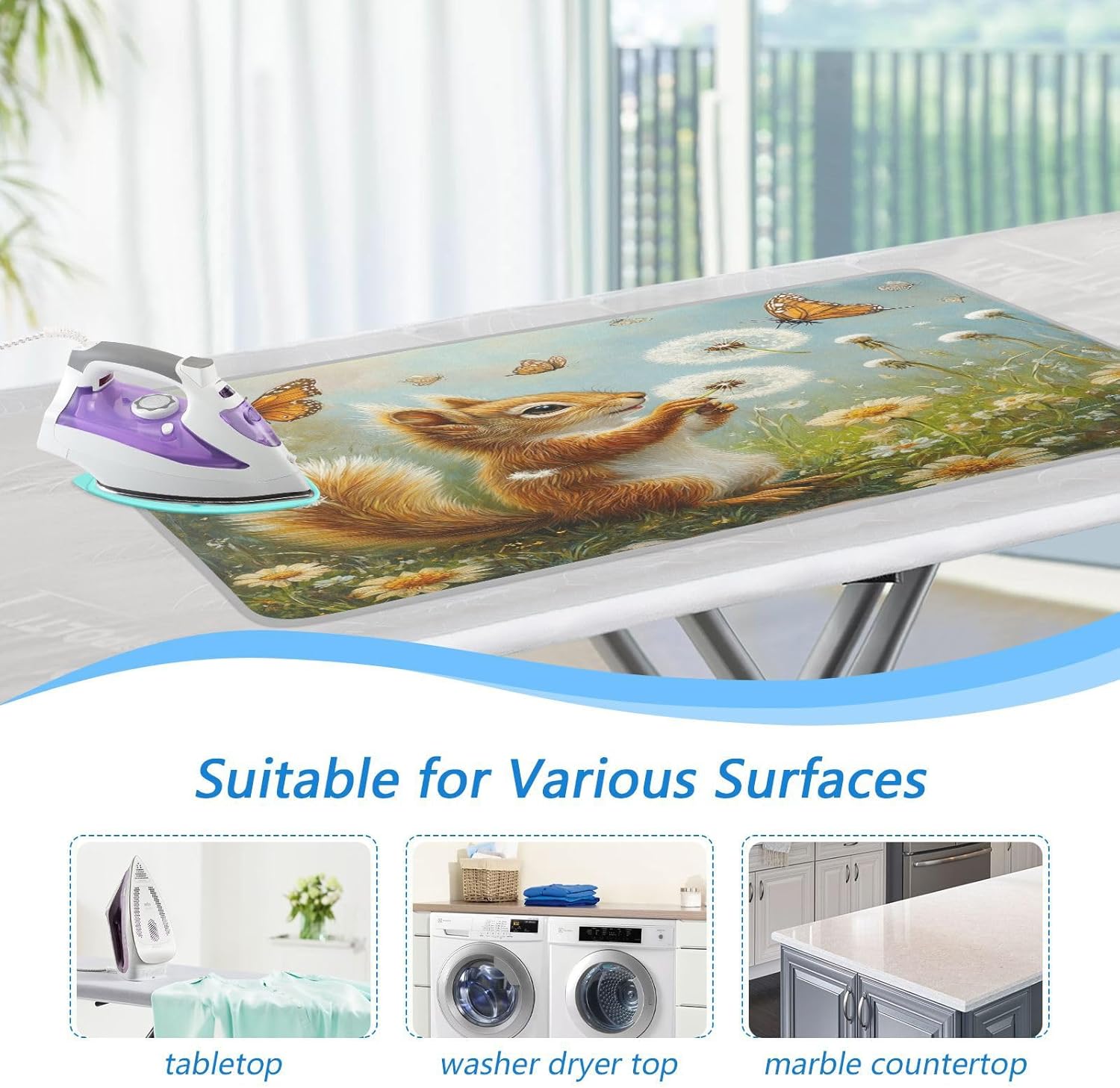 Butterfly Squirrel Dandelion Ironing Mat Thickened Ironing Blanket Travel Portable Double-Side Using Ironing Pad Travel Isolate Heat Pad Cover for Washer Dryer Table Top Countertop 27.6x47.2in