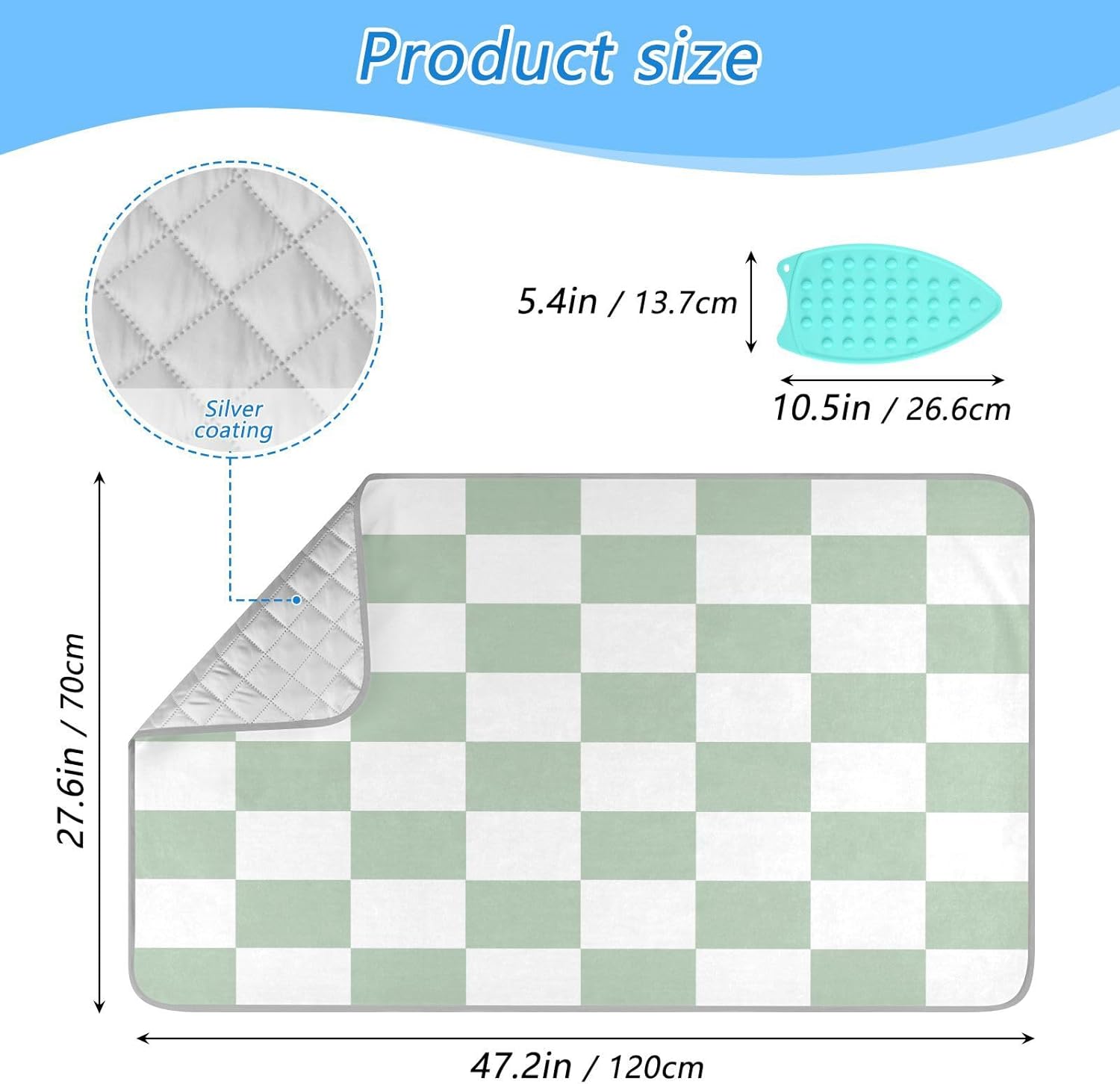Checkered Green and White Png Ironing Mat Thickened Ironing Blanket Travel Portable Double-Side Using Ironing Pad Travel Isolate Heat Pad Cover for Washer Dryer Table Top Countertop 27.6x47.2in
