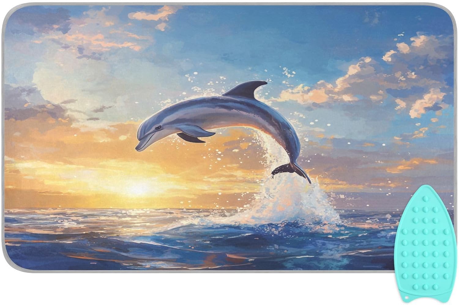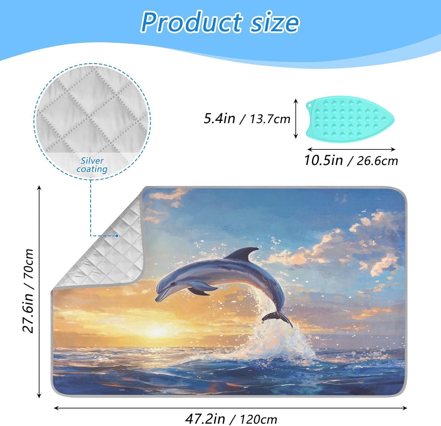Dolphin Jumping Sunset Blue Ironing Mat Thickened Ironing Blanket Travel Portable Double-Side Using Ironing Pad Travel Isolate Heat Pad Cover for Washer Dryer Table Top Countertop 27.6x47.2in