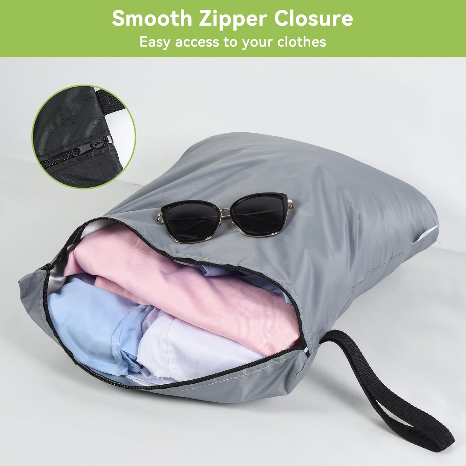 • 【Waterproof Fabric】The outer layer of the wet clothes bag is made of high density Oxford cloth with a waterproof TPU coating embedded in the inner lining and a black edge welding at the seams to enhance water resistance. The fabric of bag for wet clothes is wipeable, quick-drying, wear-resistant and durable, delivering a long service life.