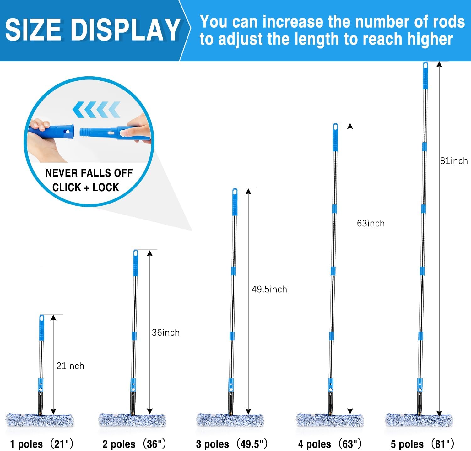 • Safe High Cleaning: Secure pole attachments prevent ladder climbs; Lightweight setup reduces arm strain during long tasks