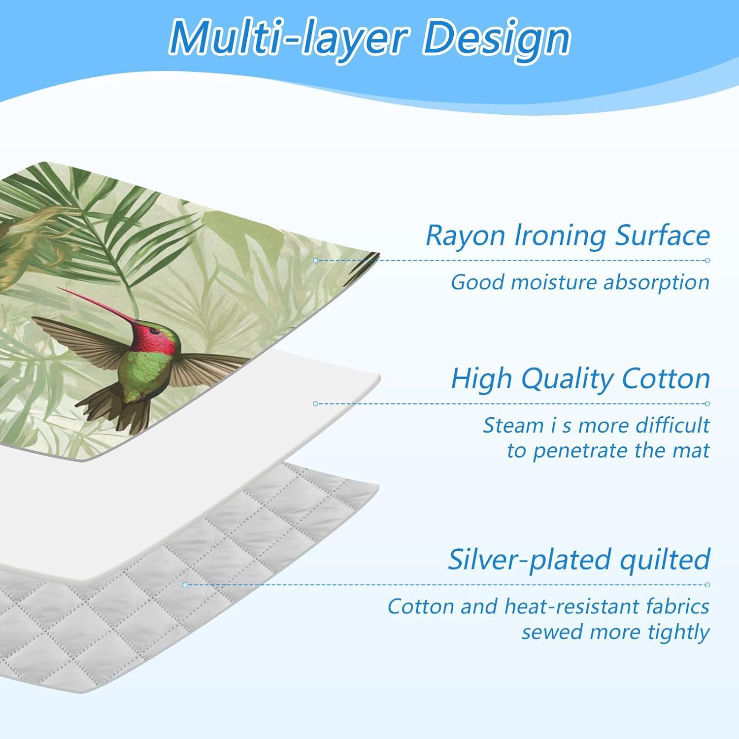 Green Anna Hummingbird and Palm Leaves Ironing Mat Thickened Ironing Blanket Travel Portable Double-Side Using Ironing Pad Travel Isolate Heat Pad Cover for Washer Dryer Table Top Countertop 27