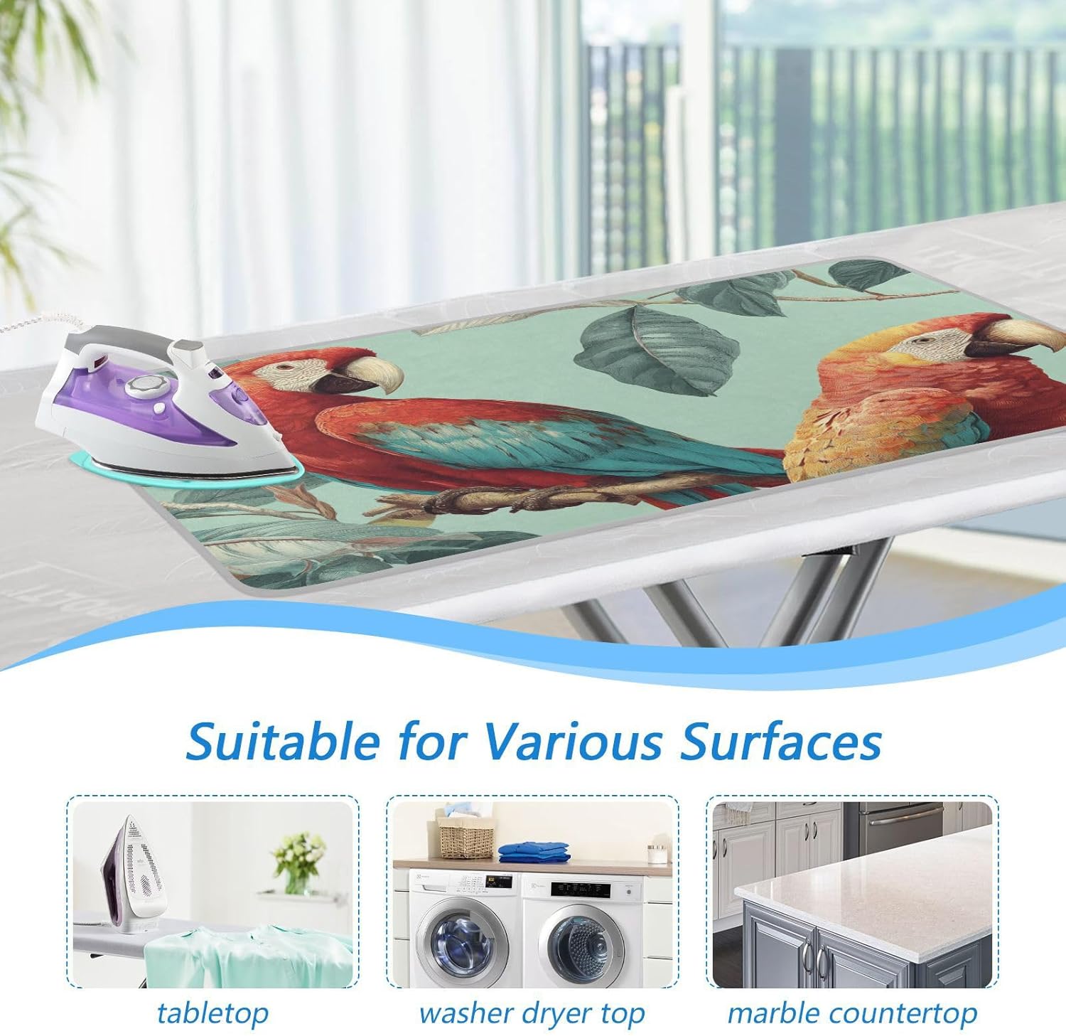 Tropical Parrots on The Branc Ironing Mat Thickened Ironing Blanket Travel Portable Double-Side Using Ironing Pad Travel Isolate Heat Pad Cover for Washer Dryer Table Top Countertop 27.6x47.2