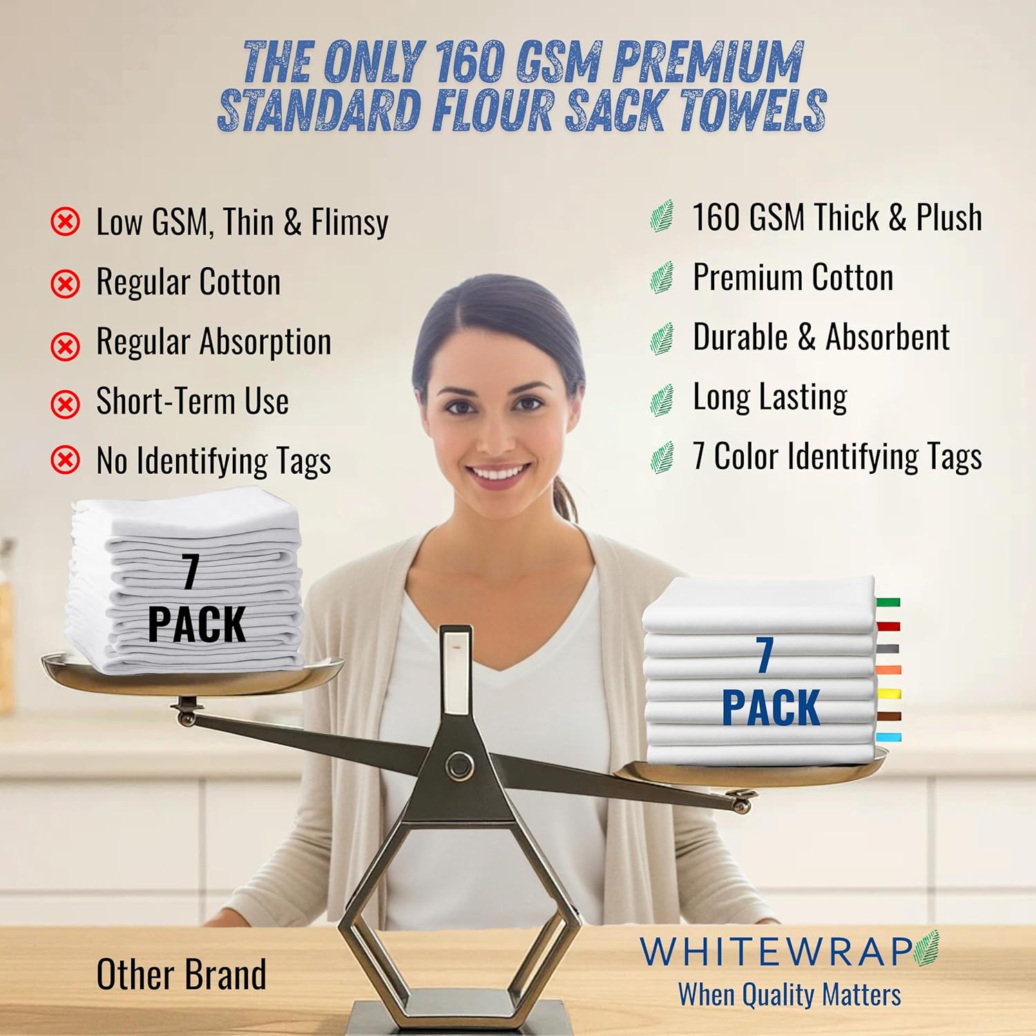 7-Pack Flat Flour Sack Towels – 100% Cotton Kitchen Dish & Tea Towels for Crafting, Embroidery, Baking & Bread Proofing – Thick, Absorbent, Quick-Drying – White (18x28)