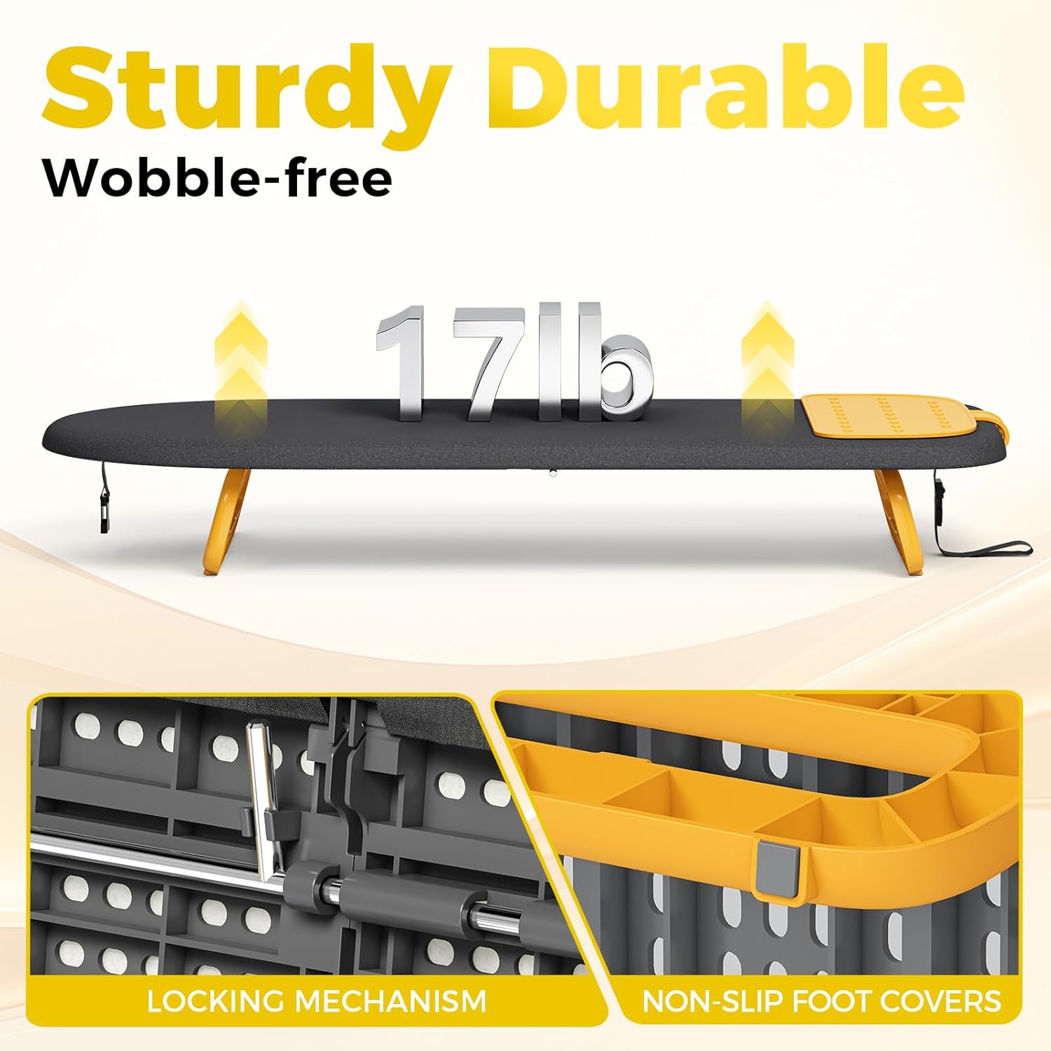 • Breathable Panel & Iron Mat: Mesh design make this small iron board dissipates heat quickly, allowing you to easily achieve a smooth and flat ironing effect. Heat-resistant ironing mat, place the iron smoothly and protects the ironing board surface from the heat of the iron