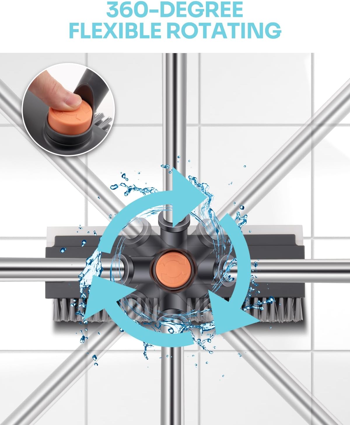 • 【Multi-Angle Adjustable】With a 360° rotating head and adjustable angles, this scrub brush gives you complete control to effortlessly clean floors, walls, corners, and hard-to-reach spots.
