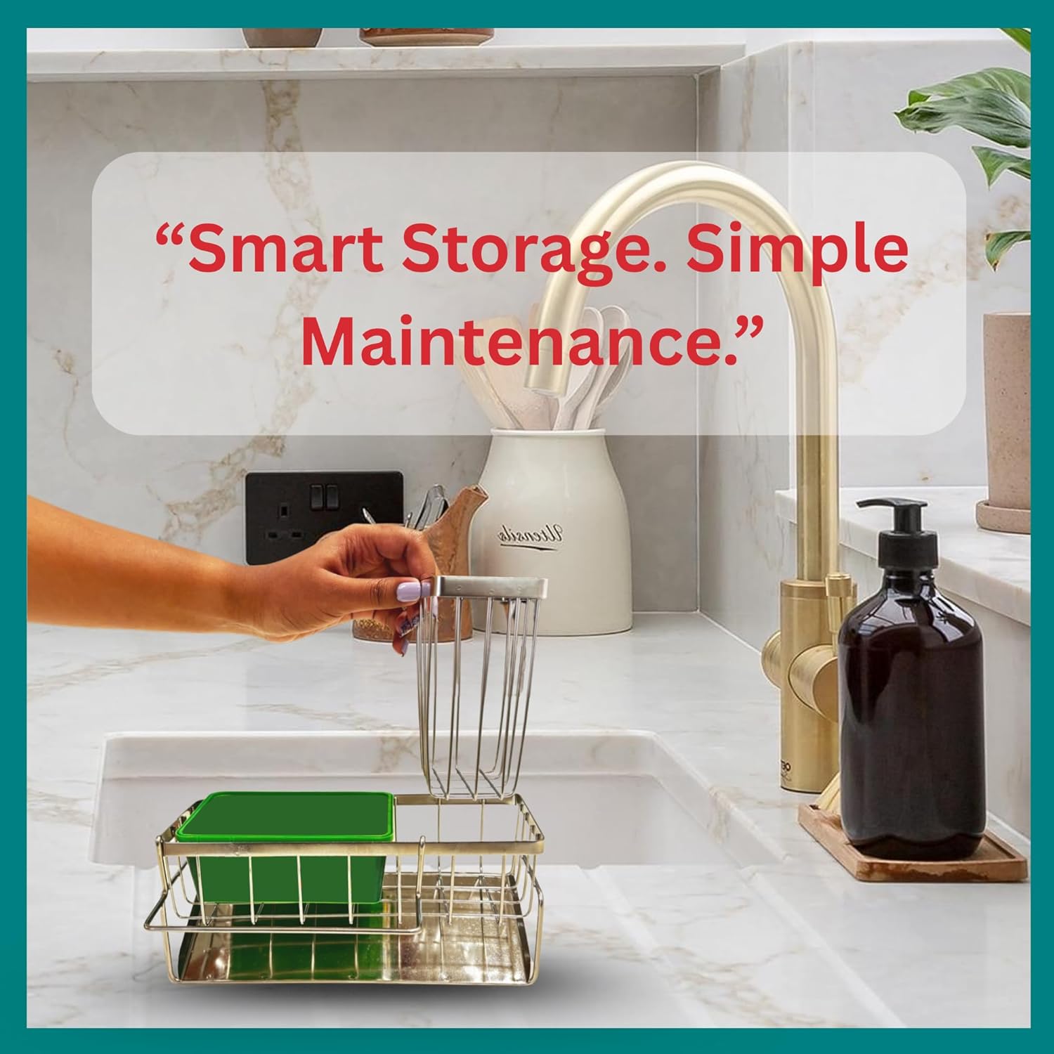 • 🔰 𝗠𝘂𝗹𝘁𝗶-𝗙𝘂𝗻𝗰𝘁𝗶𝗼𝗻𝗮𝗹 𝗦𝘁𝗼𝗿𝗮𝗴𝗲: Equipped with separate holders for sponges, brushes, and dishcloths to keep all your cleaning essentials neatly organized and within reach. Helps reduce clutter and improves kitchen efficiency during daily cleaning tasks.