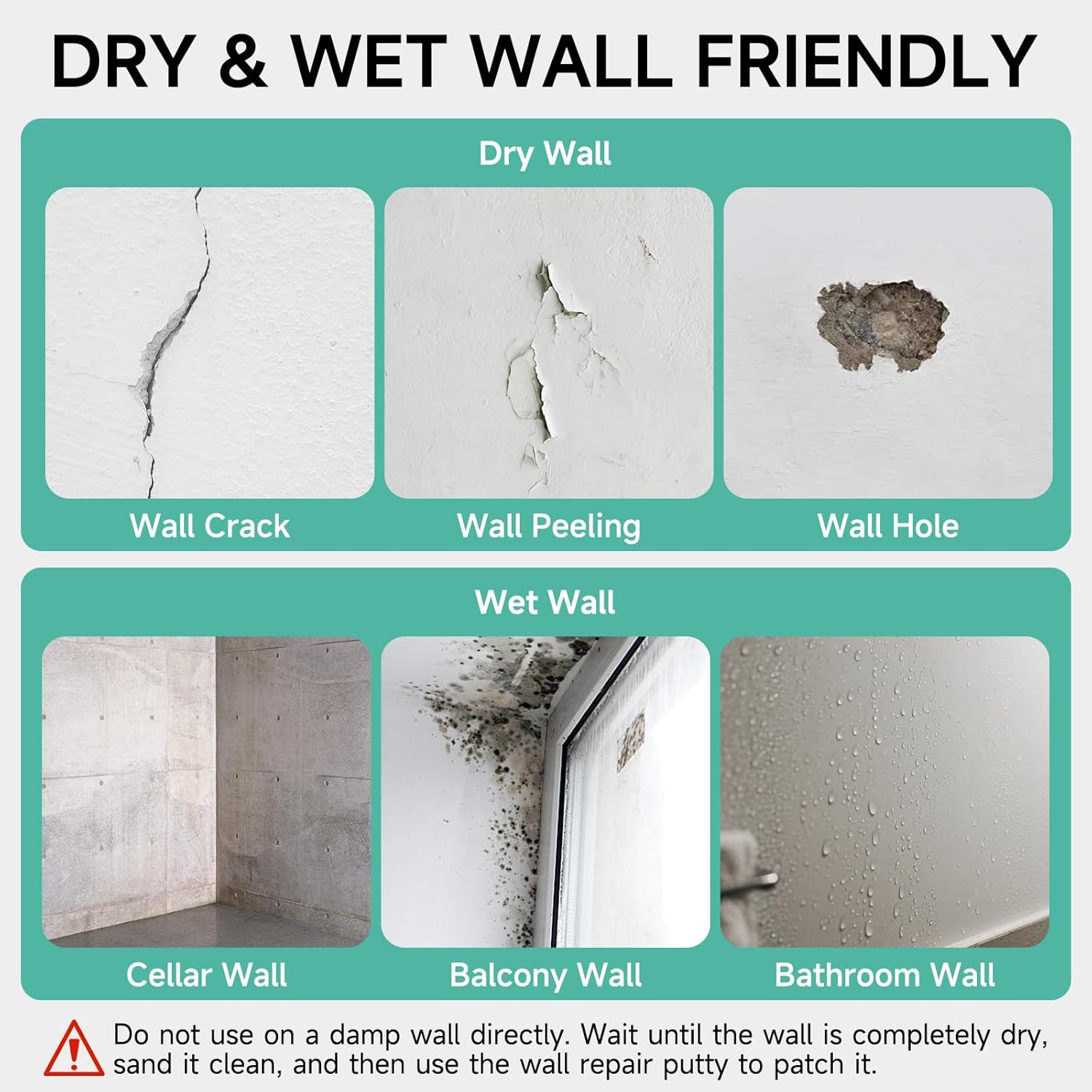 • WATERPROOF FORMULA - Our wall repair putty features fully sealed waterproof performance, maintaining excellent results even in damp areas like basements, warehouses, balconies and bathrooms. No shrinking, cracking or streaking after drying. The repaired area becomes virtually invisible after painting, leaving walls with a flawless finish.