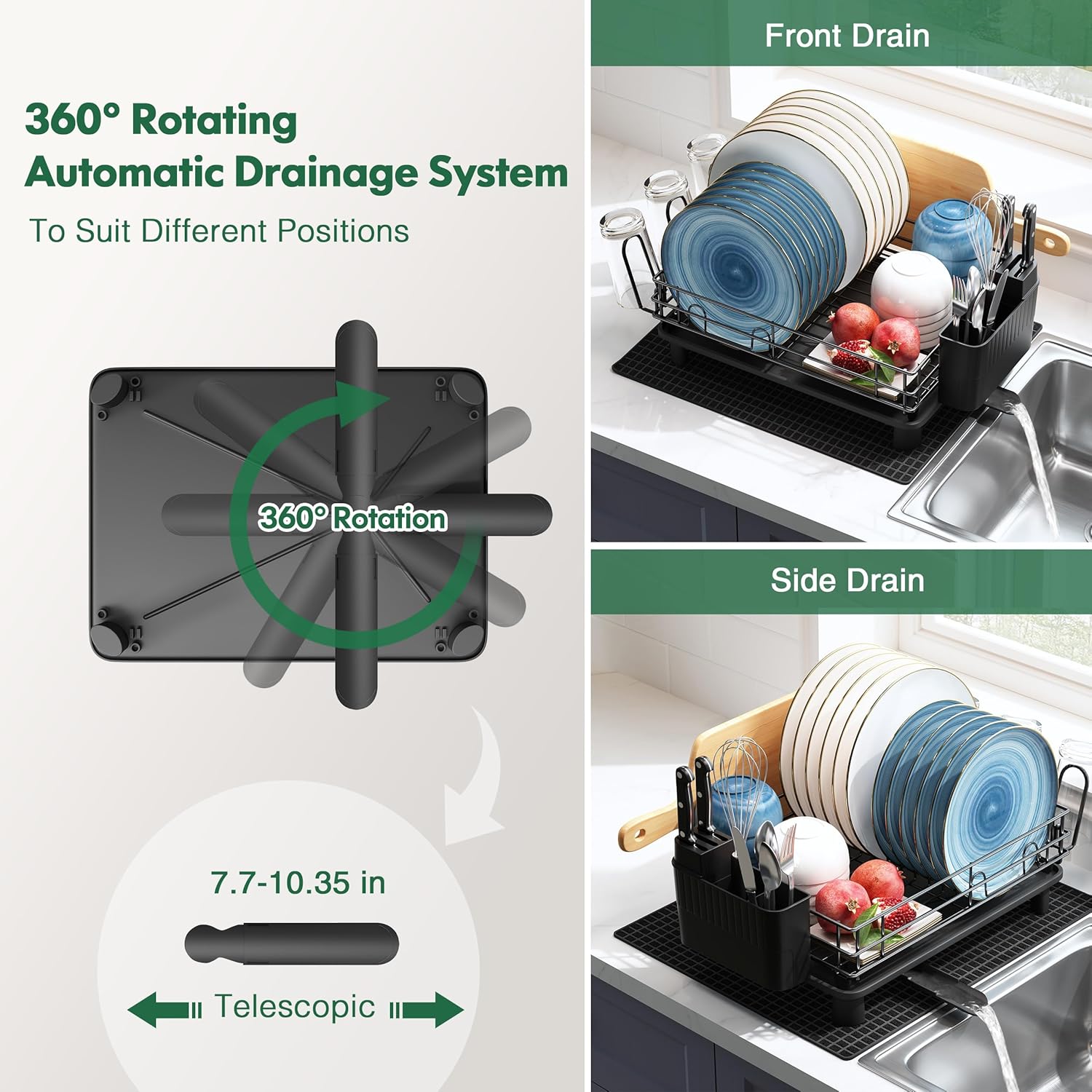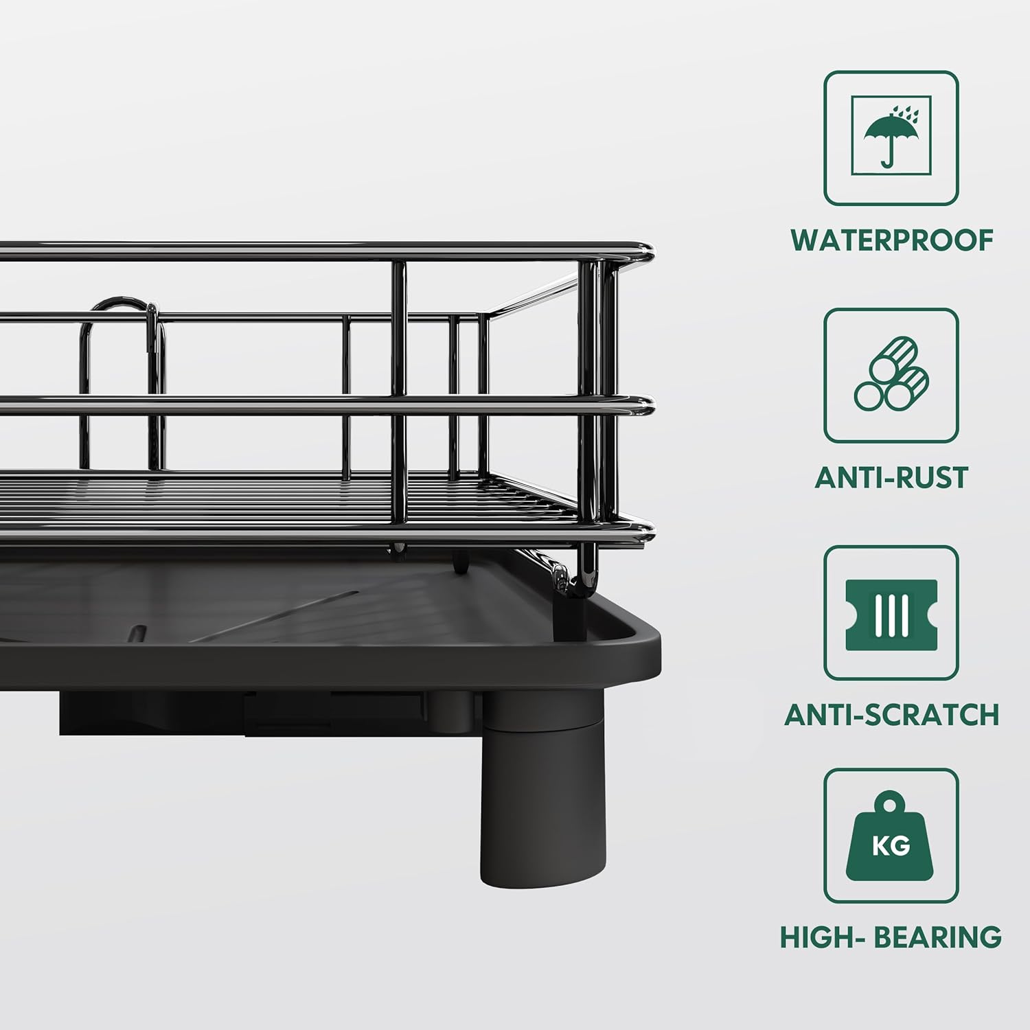 • ✨Modern Black Dish Dryer Rack: Smudge-resistant black dish drying rack blends seamlessly. Easy wipe finish stays clean, no stains, no scrubbing