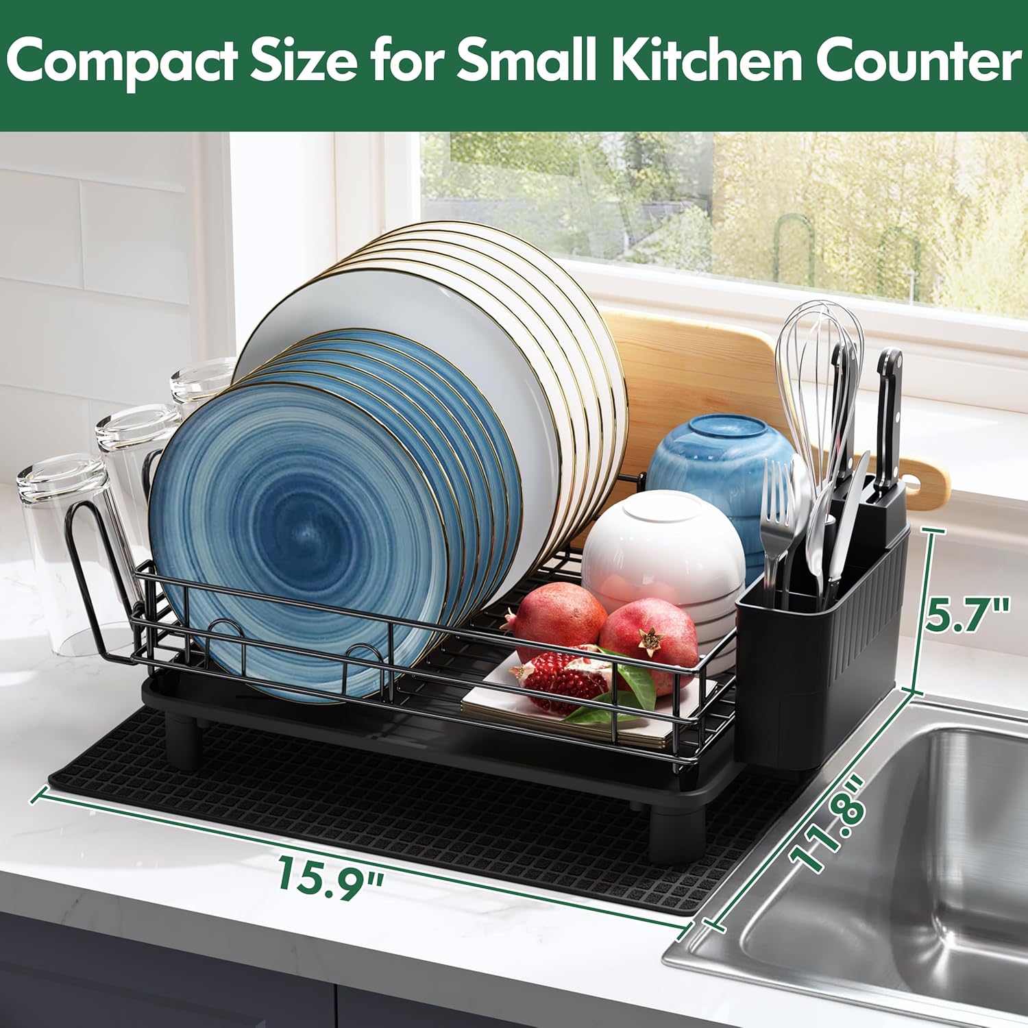 • 📐Compact Dish Rack for Small Kitchen Counters: Space saving 15.9"x11.8" design fits narrow spaces effortlessly. Holds dish drying rack capacity without clutter