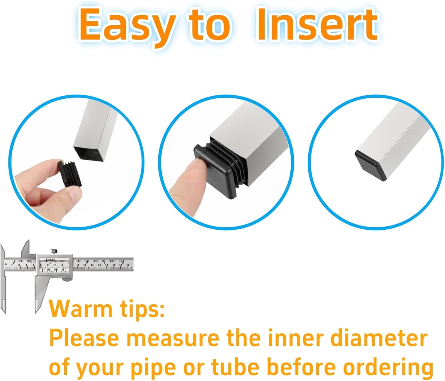 • Square Plastic Tubing end caps made by high quality plastic material and no odor smells,4.5mm thicken bottom, durable chair glide. Best furniture slider for carpet, moving easily. Chair leg inserts for metal legs, keeping securely