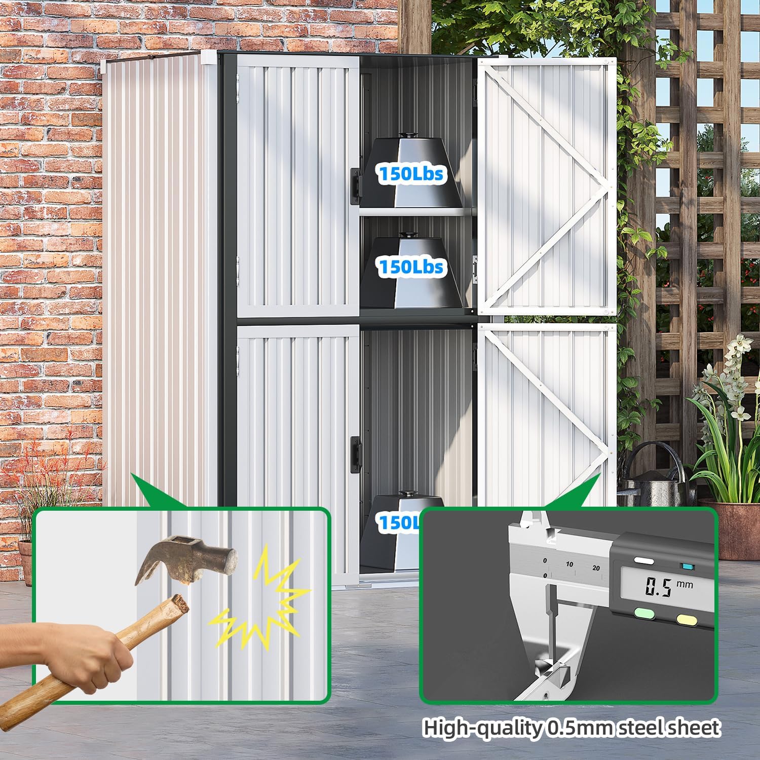 • High Weight Capacity: Each shelf in this tall outdoor storage cabinet can support up to 150 lbs, providing robust and durable storage. The eco-friendly powder coating is scratch-resistant and rustproof.