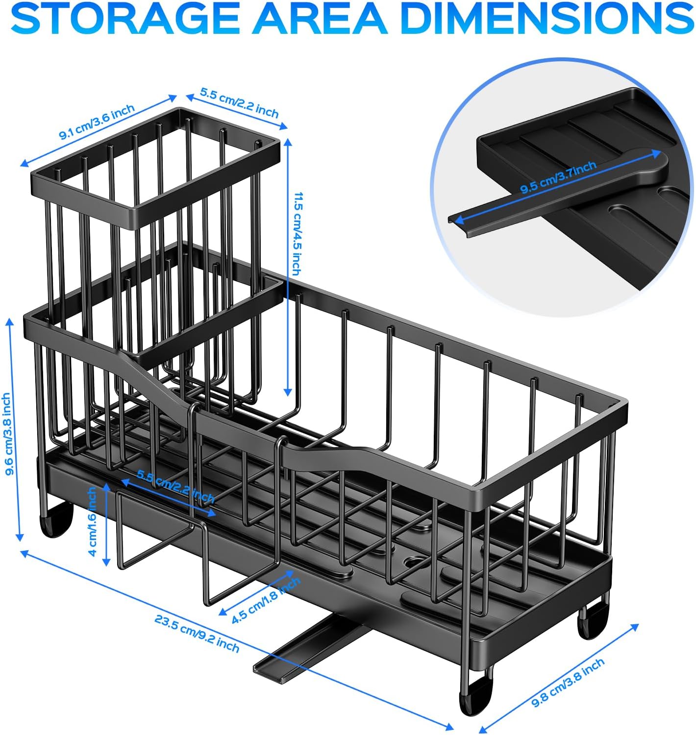 - 『Anti-Rust & Durable』The kitchen sponge holder is made of high-quality stainless steel. After polishing, it undergoes a rust-proof black coating treatment, which prevents rust, is durable, and prevents deformation. It can enhance the style and beauty of the kitchen no matter where it is placed on the sink.