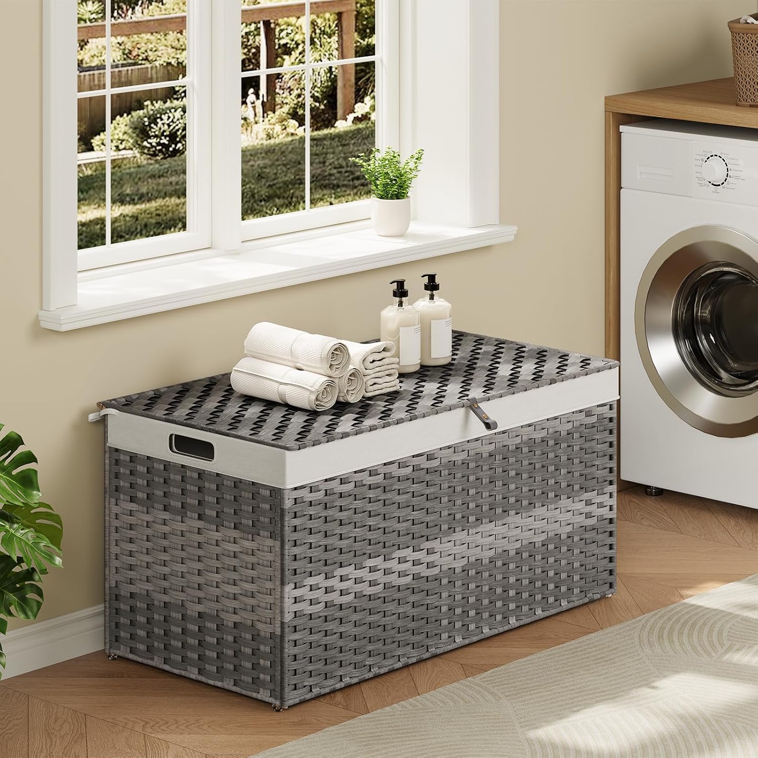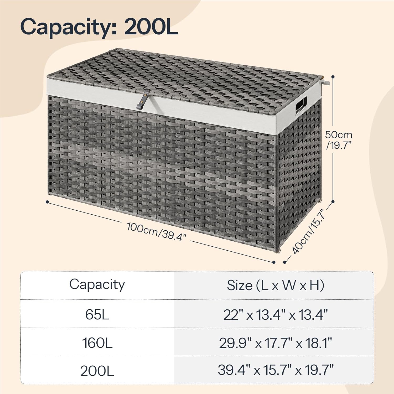 • Ultra-Spacious Storage: This 200L storage basket is a clutter-buster for bedrooms, etc. Its full-open lid lets you swiftly grab or stash clothes blankets. No more messy chaos; it turns your space into a neat, organized haven