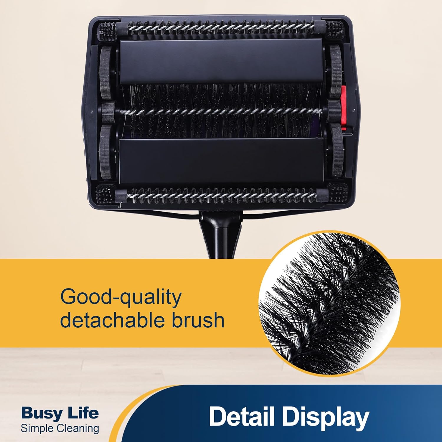 • Yocada Carpet Sweeper Cleaner Manual Household Sweeper: There is no dustpan to deal with. You can easily empty the garbage by pulling up the button on the sweeper, and you can use the scrubber brush to remove hair on it