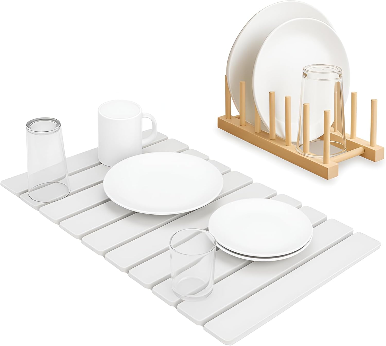 Stone Dish Drying Mat – Large 24×16 Quick Dry Stone Mat Kitchen, Diatomaceous Earth Dish Drying Mat for Kitchen Counter with Wooden Drying Rack, Fast Drying Stone Mat, Eco-Friendly & Super Absorbent