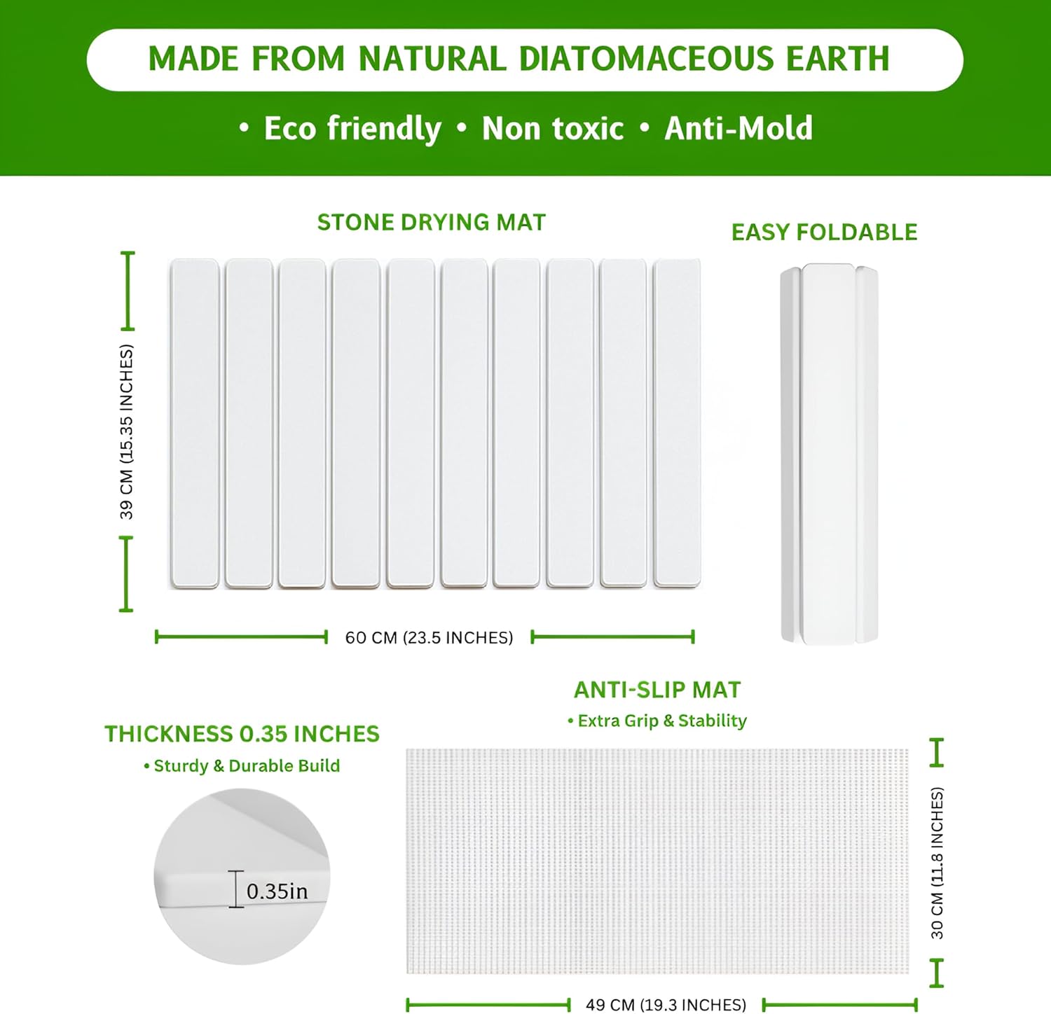 • Eco-Friendly, Food-Safe & Heat-Resistant Design Made from non-toxic, food-grade diatomaceous earth, this eco-friendly mat is safe for direct contact with food. Also functions as a heat pad for hot pots and pans, keeping surfaces dry, clean, and protected.