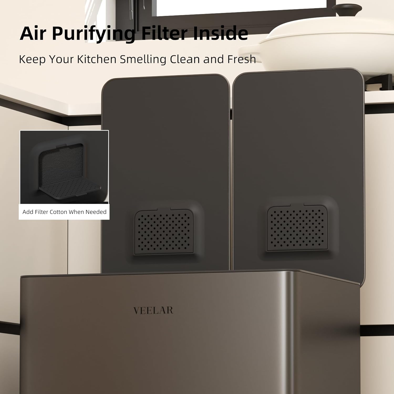 • STEP MECHANISM:Veelar double trash can kitchen, with hands-free foot pedal operation ensures hygienic waste disposal while maintaining cleanliness.