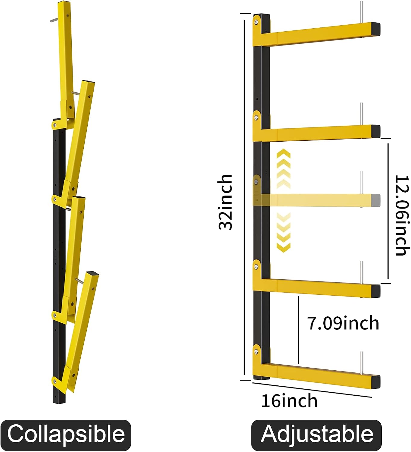 • FOLD FLAT WHEN NOT IN USE: The wood storage rack's foldable arms save space when not in use—ideal for small workshops or tight storage areas. Maximize floor space instantly!