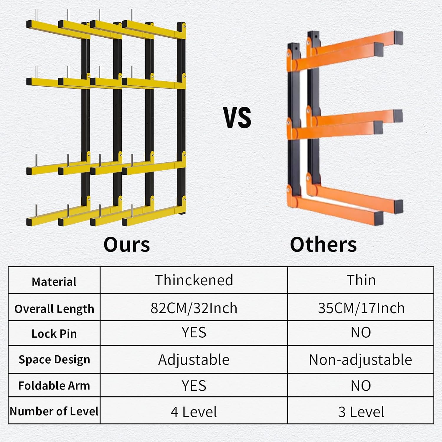 • VERSATILE ADJUSTABLE LUMBER RACK: Customize shelf heights to fit store skis, pipes, surfboards, tools, golf clubs, or lumber – all in one space-saving rack! Includes anti-slip locking pins to Prevent items from slipping.