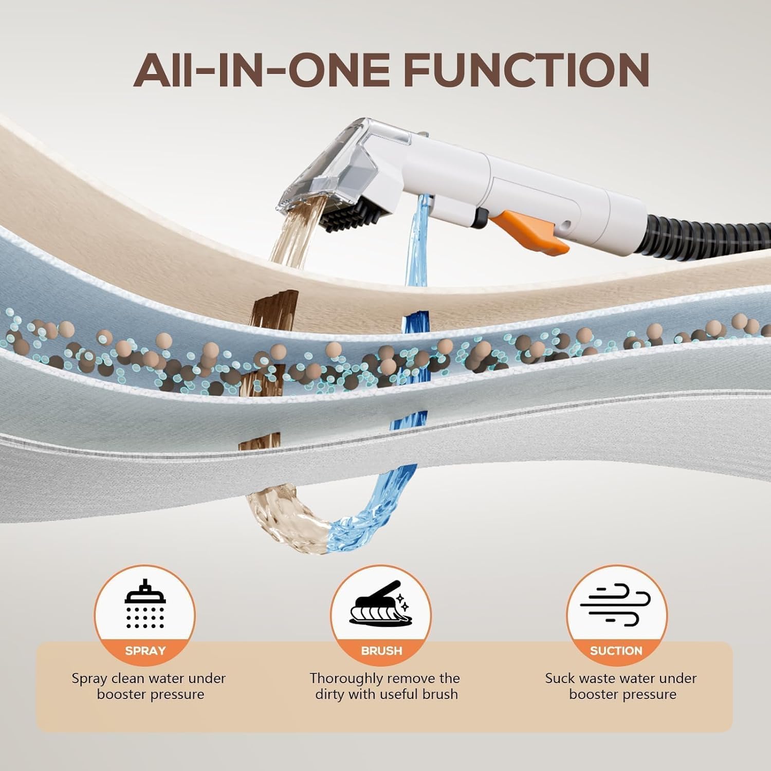- 【NEW UPGRADE POWERFUL SUCTION】:The Ailltopd Portable Carpet & Upholstery Spot Cleaner is equipped with a 500W motor, which can provide a super suction force of 15Kpa,and you can easily and quickly clean stubborn stains such as dirt, wine, pet feces, etc. on carpets and indoor decorations through spraying, brushing, and suction steps, ensuring that carpets dry quickly after cleaning and quickly return to normal, making your home environment healthier and safer.