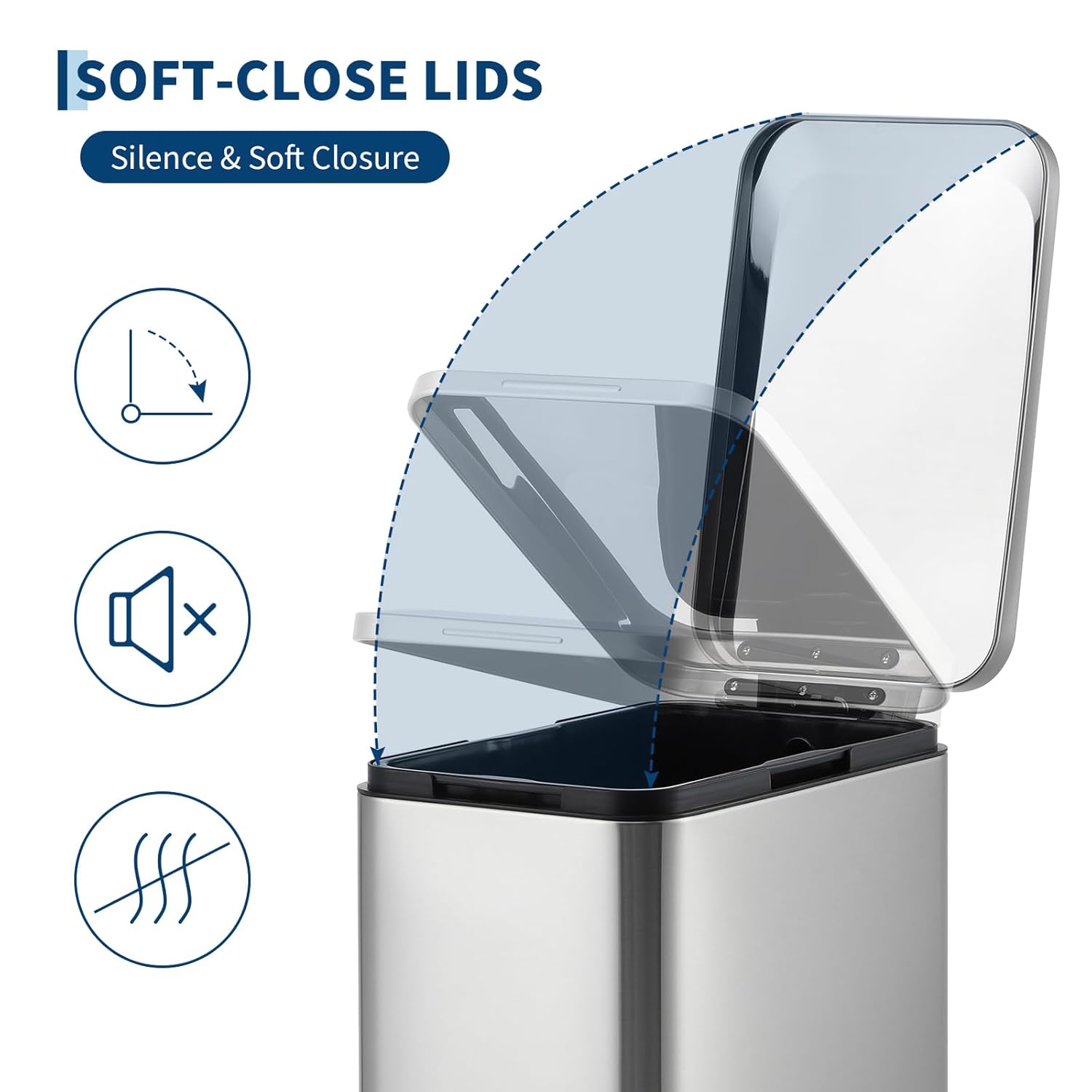 • 【Fingerprint-Proof & Durable】Brushed stainless steel construction resists scratches and smudges, keeping your kitchen garbage can looking polished. No more wiping fingerprints all day!