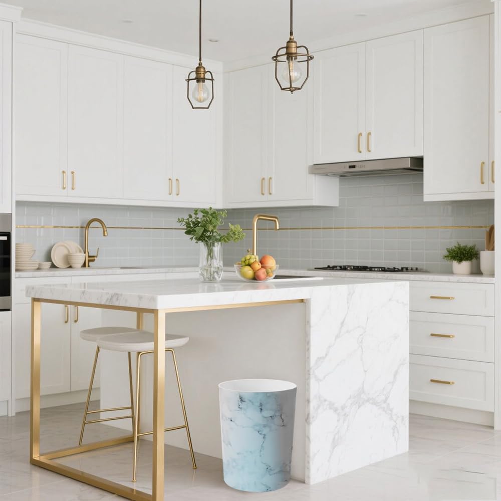 • Chic Marble Aesthetic:Featuring stylish marble - like patterns, this plastic trash can brings a touch of elegance to your space. It effortlessly matches various interior styles, from modern to classic.