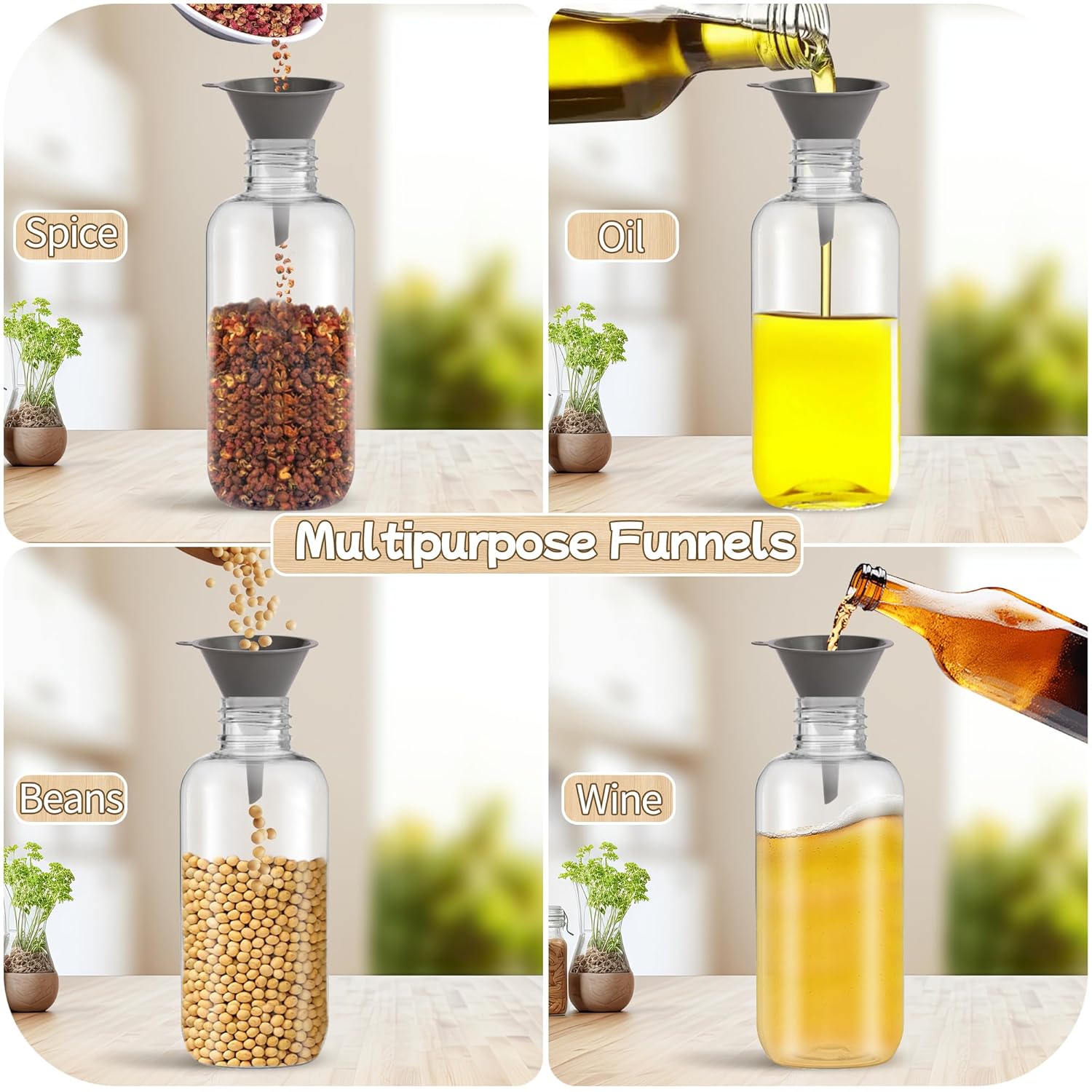 - 【𝐏𝐫𝐚𝐜𝐭𝐢𝐜𝐚𝐥 𝐃𝐞𝐬𝐢𝐠𝐧 𝐟𝐨𝐫 𝐄𝐟𝐟𝐨𝐫𝐭𝐥𝐞𝐬𝐬 𝐓𝐫𝐚𝐧𝐬𝐟𝐞𝐫𝐬】Featuring a classic cone-shaped structure with a narrow, slant-cut spout, our funnels reduce the resistance of liquid flow and prevent spills and waste. The smooth inner surface ensures fast and accurate pouring, making your transfers quick and easy. These kitchen funnels are designed to fit a variety of containers, ensuring a spill-free experience every time.