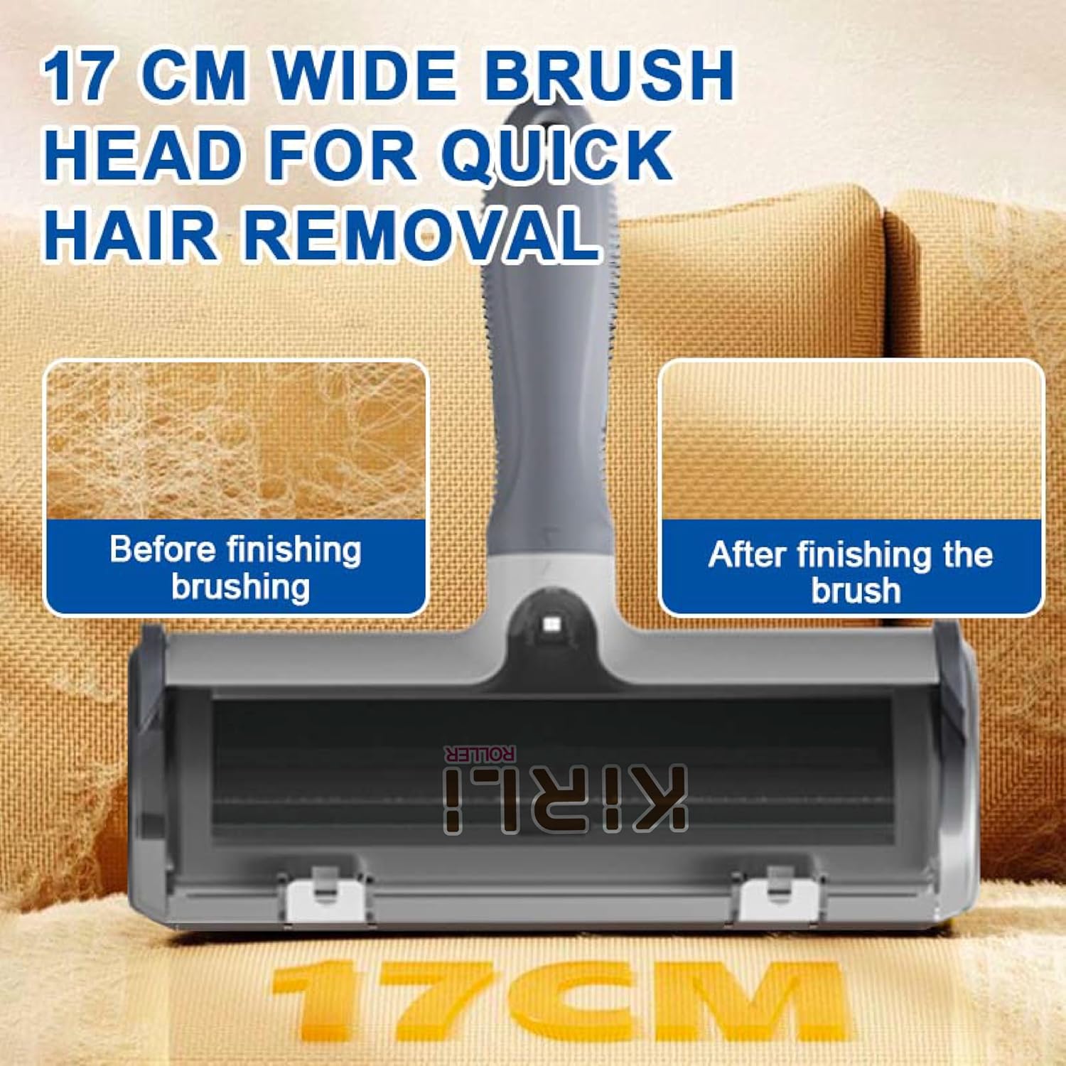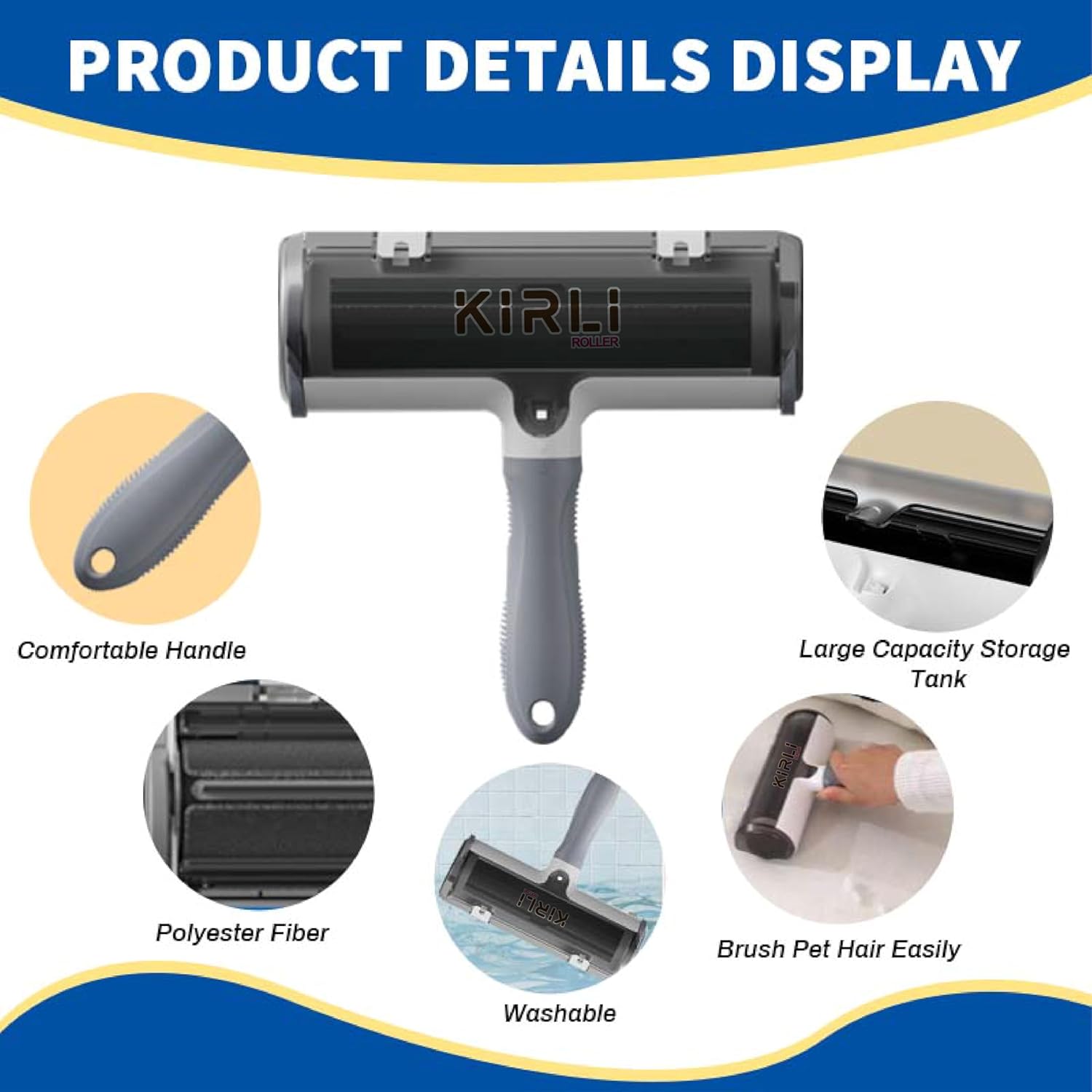 KIRLI Roller Pet Hair Remover and Reusable Lint Roller – Furniture, Couch, Carpet, Clothing and Bedding Cat and Dog Hair Remover – Portable Multi-Surface Fur Removal Tool (Gray)