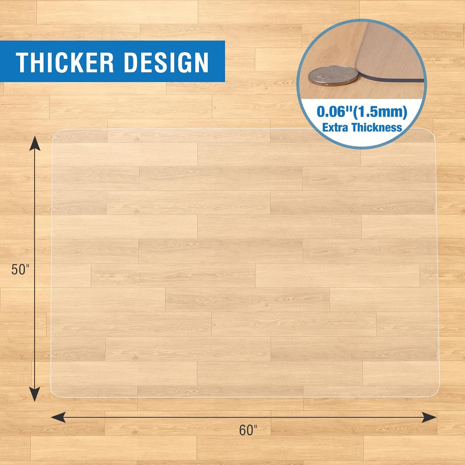Clear Chair Mat, 60" x 50" Office Chair Mat for Hard Floors, Floor Protector Desk Mat for Gaming Chair, Vinyl Floor Mat for Home Office Kichen Living Room, Clear