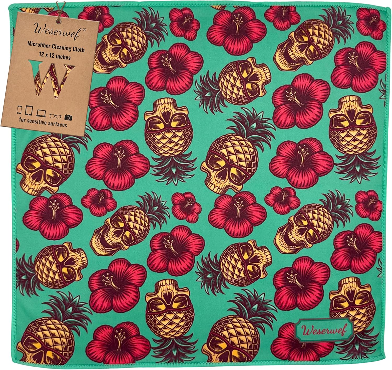 WESERWEF Design Microfiber Glasses Cleaning Cloth – Premium Cleaning Cloth for Eyeglasses, Screens, Tablets, Cameras & Lenses, 12" x 12", Ultra-Soft & Scratch-Free (Skull)