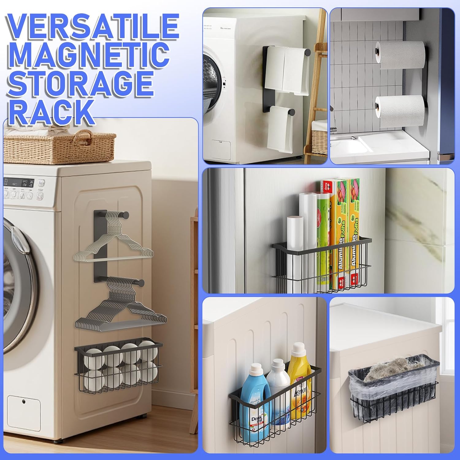 - 【AMAZING MAGNETIC LAUNDRY STORAGE】Upgrade your laundry organization with our New Set Magnetic Hanger Organizer + Storage Basket Set. The powerful magnets adhere instantly to washing machines, dryers, or any metal surface, providing a seamless solution for hanging clothes and storing essentials.