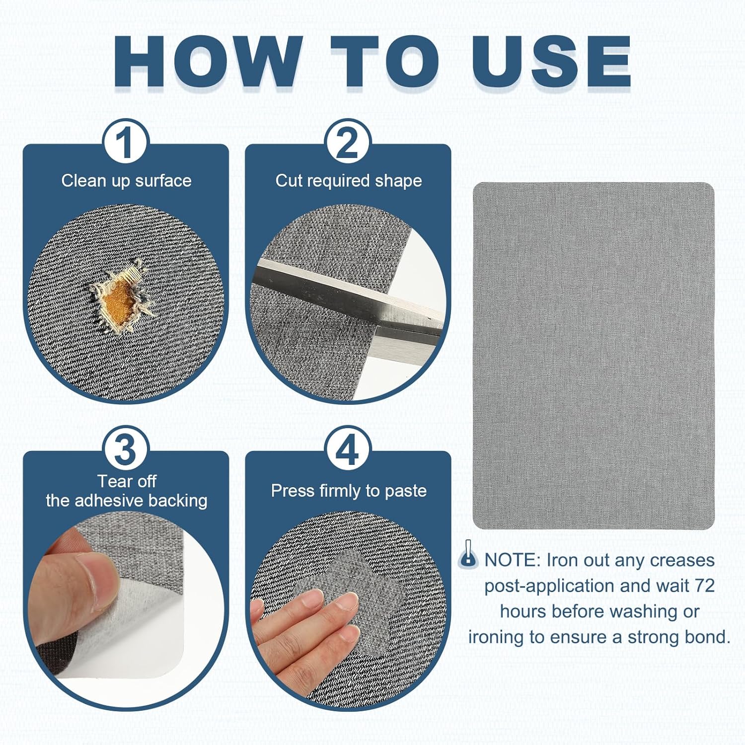 • Advantage: Our fabric repair patch tape is crafted from durable linen fabric, featuring an easy peel-and-stick design with a soft touch. Fabric patches are resistant to pilling and shrinking, machine washable for multiple uses while retaining its adhesive qualities.